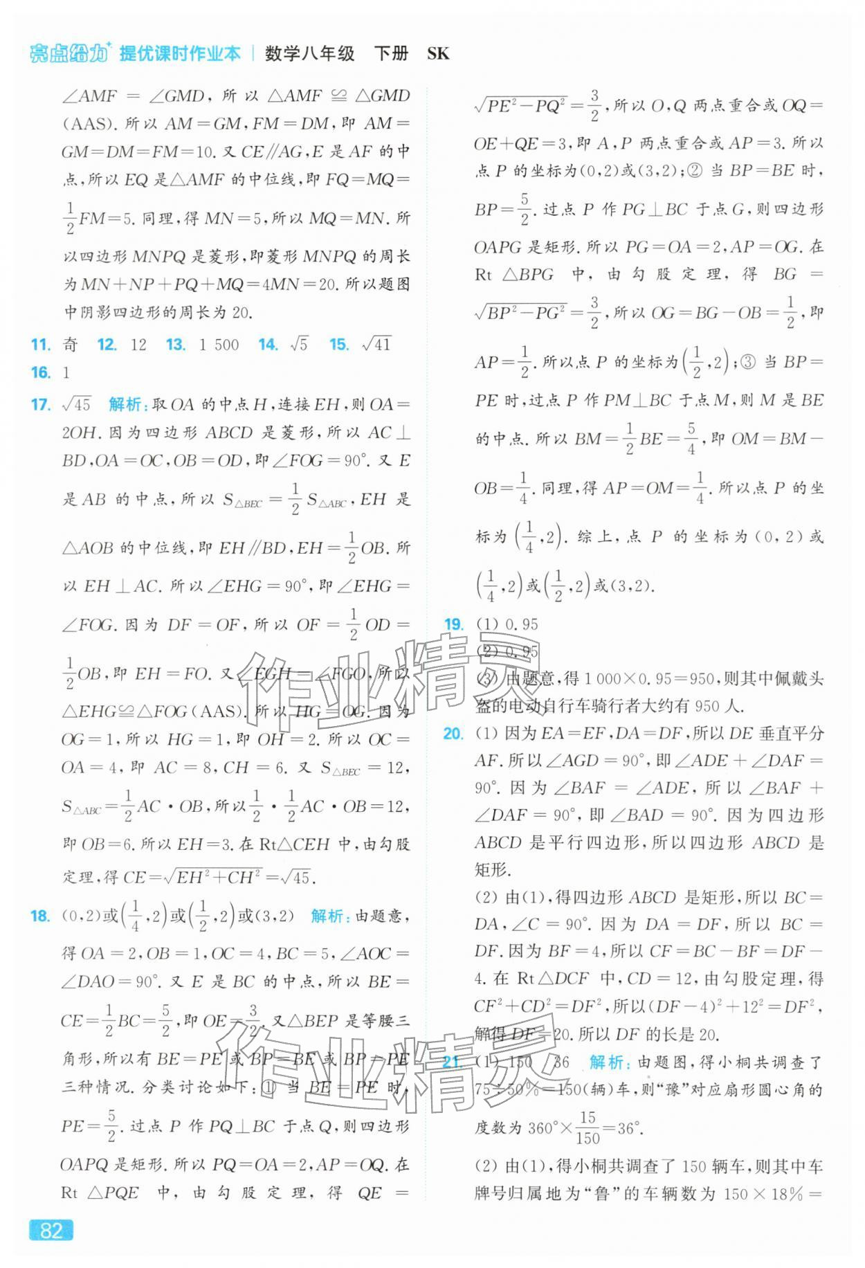 2026年亮点给力提优课时作业本八年级数学下册苏科版参考答案第82页