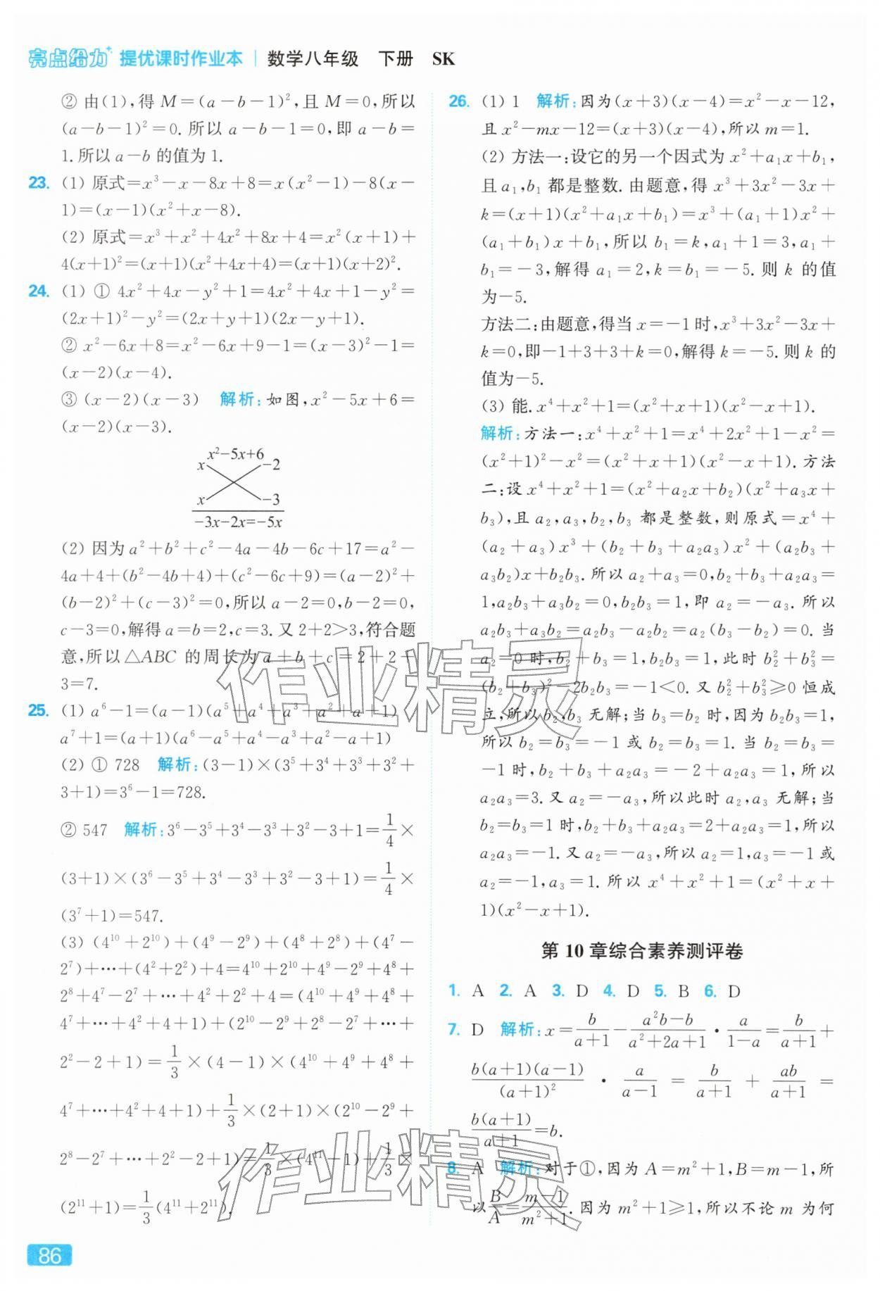 2026年亮点给力提优课时作业本八年级数学下册苏科版参考答案第86页