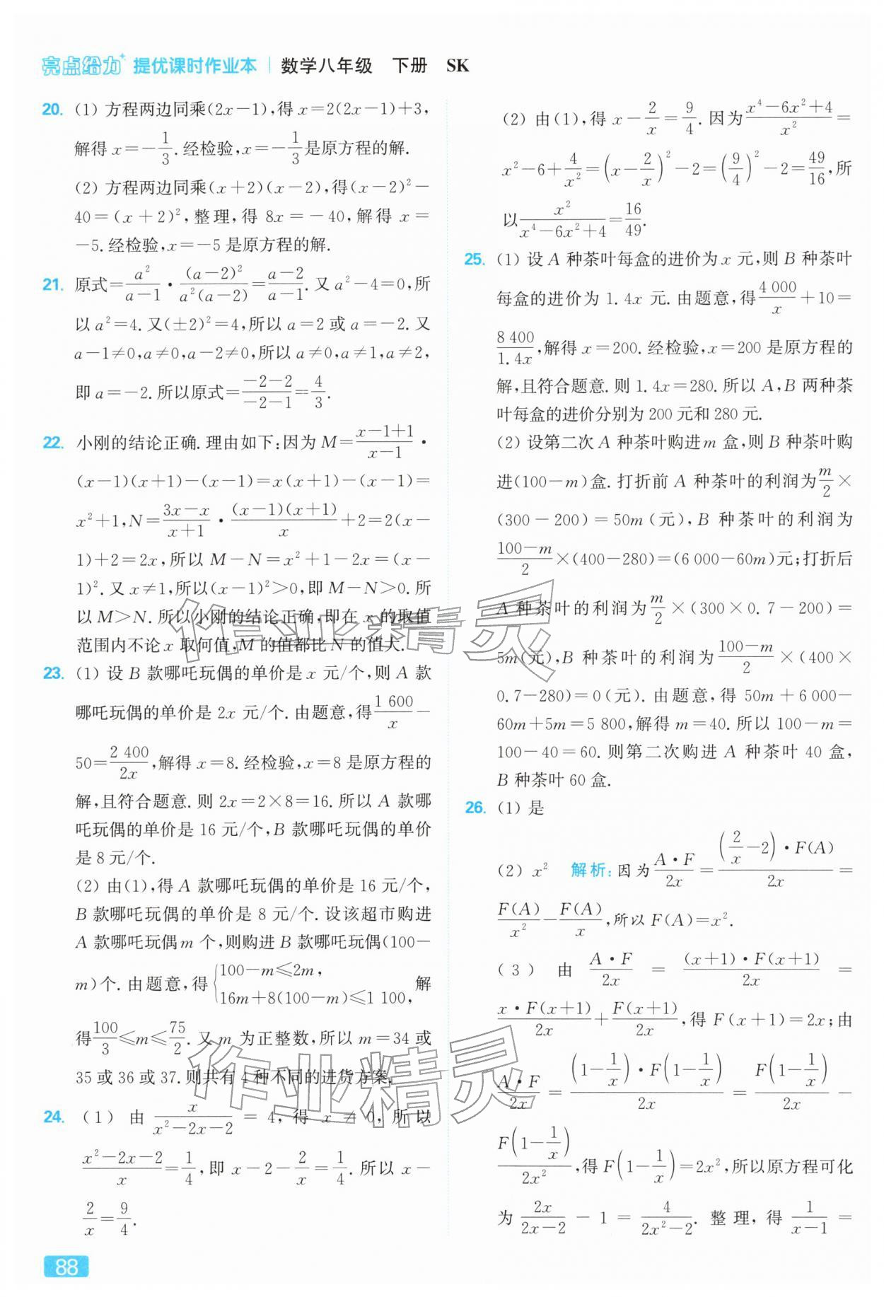 2026年亮点给力提优课时作业本八年级数学下册苏科版参考答案第88页