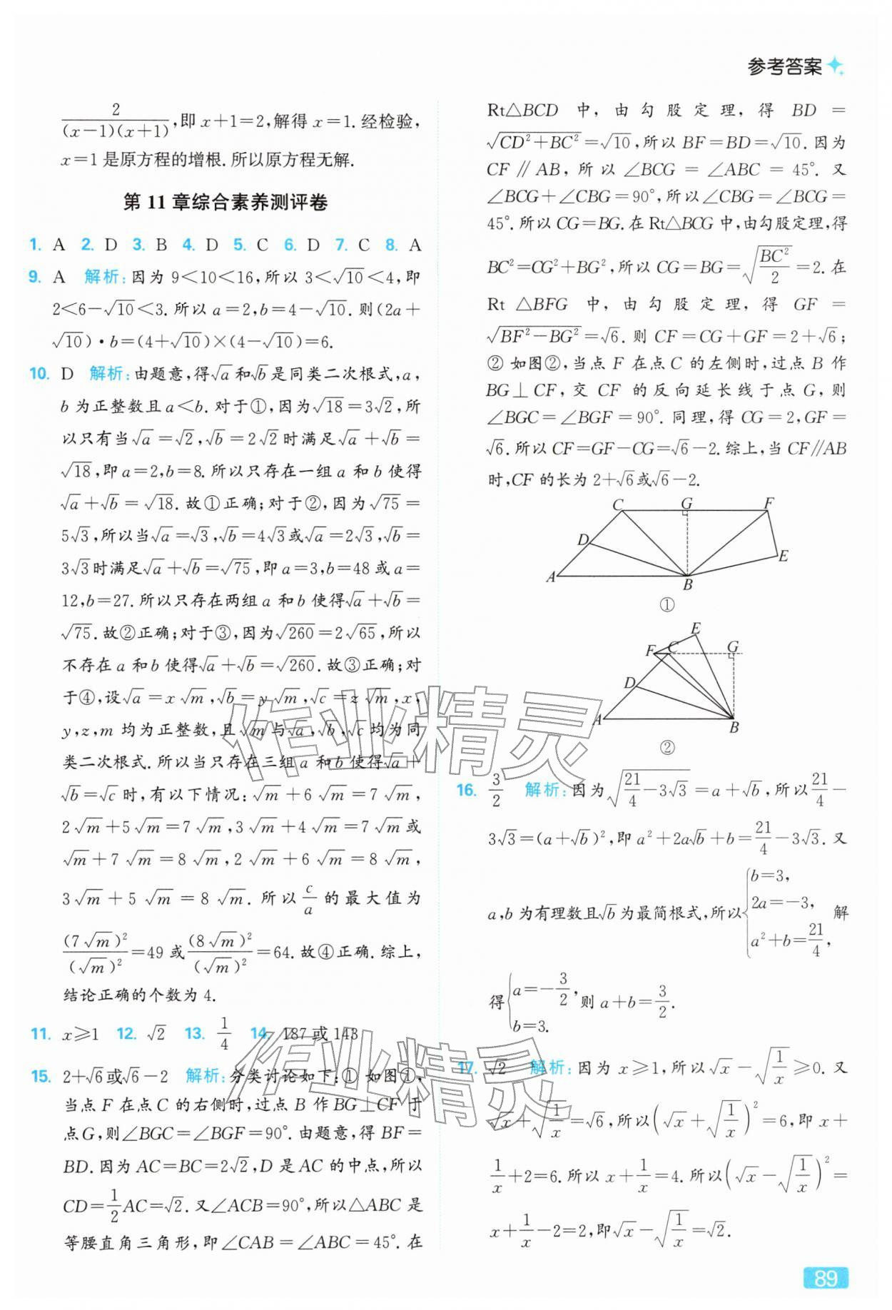 2026年亮点给力提优课时作业本八年级数学下册苏科版参考答案第89页