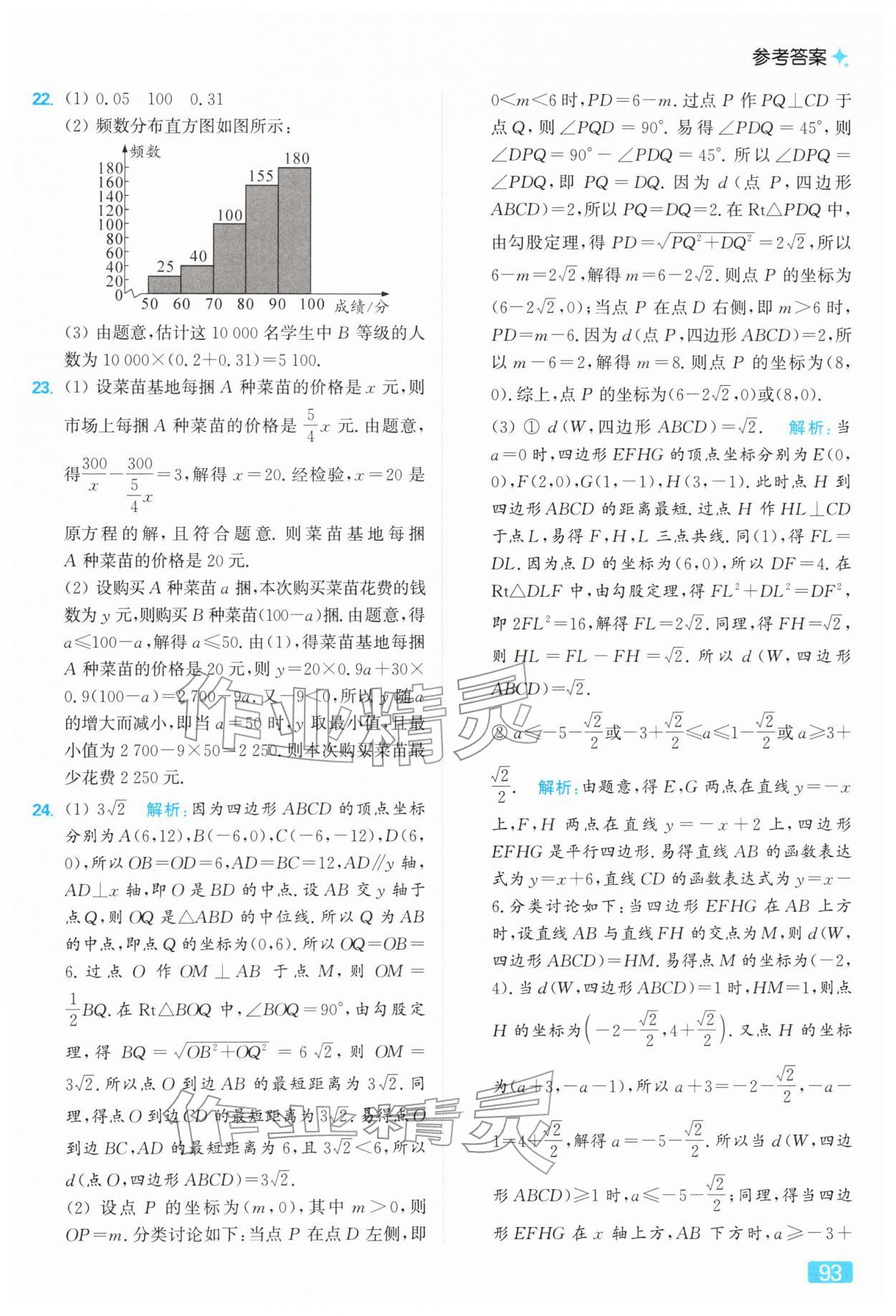 2026年亮点给力提优课时作业本八年级数学下册苏科版参考答案第93页