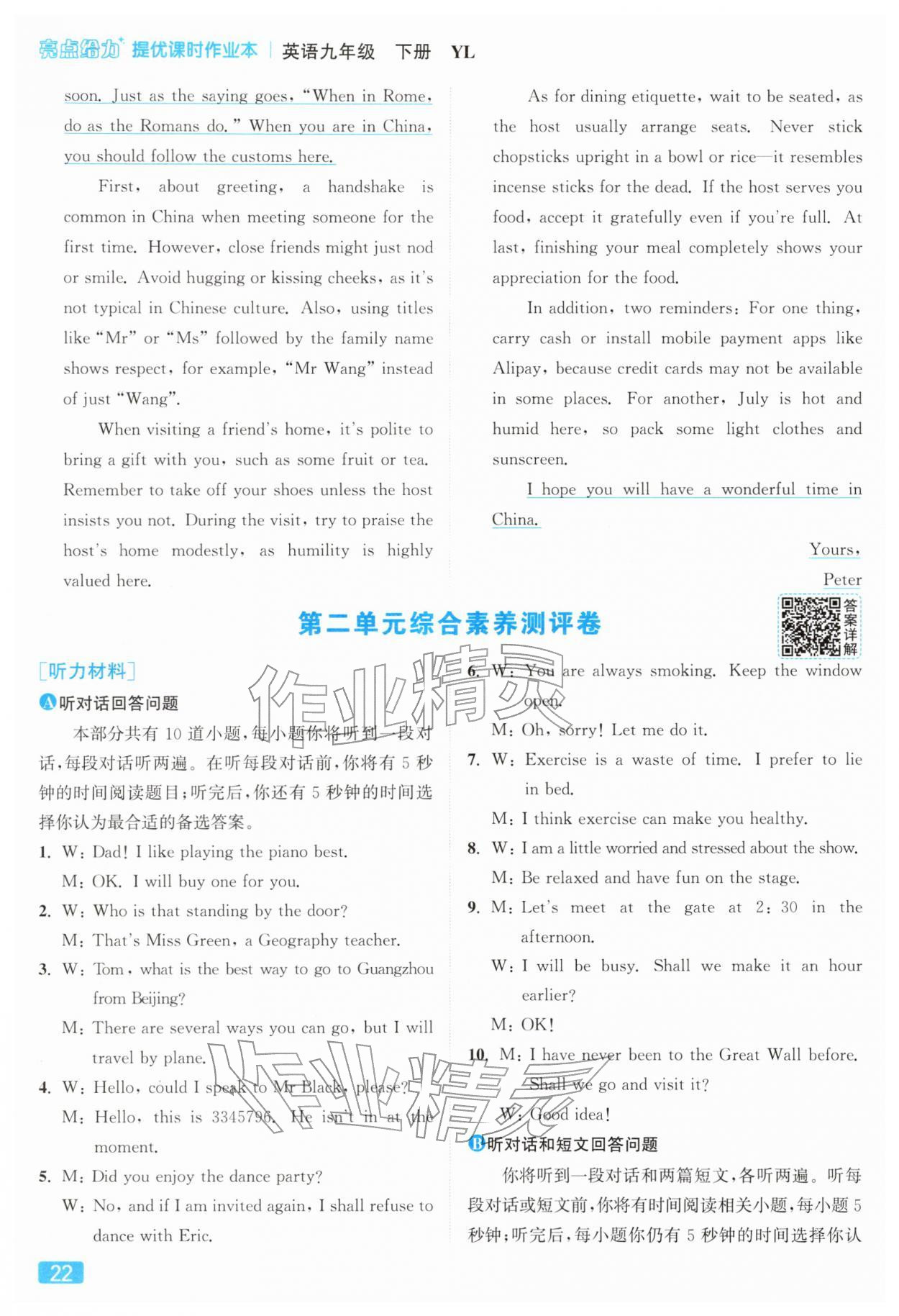 2026年亮点给力提优课时作业本九年级英语下册译林版参考答案第22页