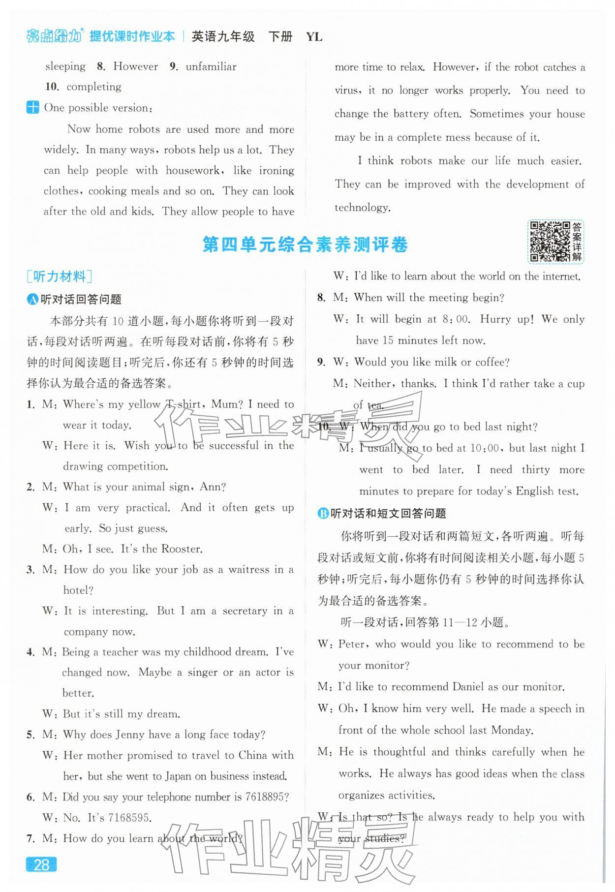 2026年亮点给力提优课时作业本九年级英语下册译林版参考答案第28页