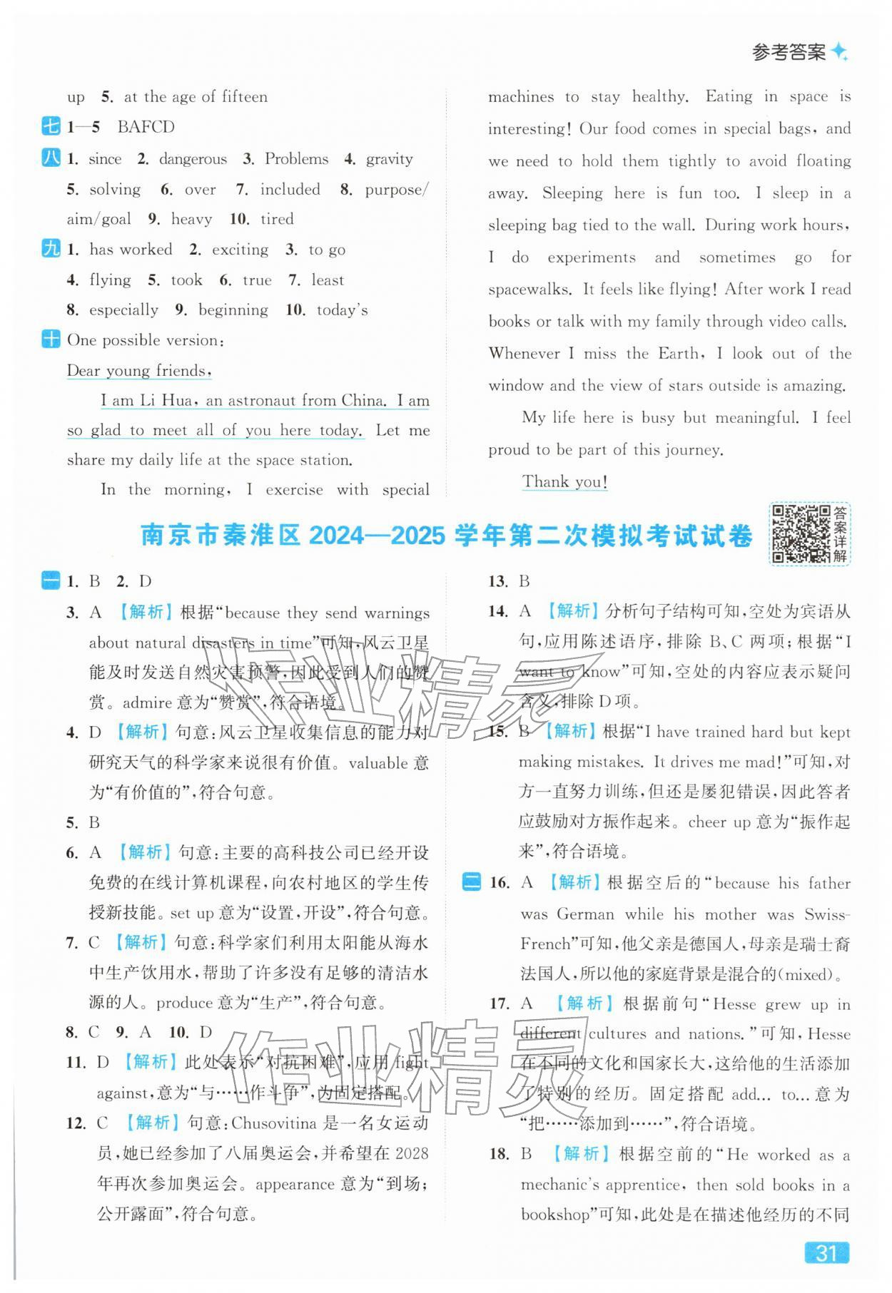 2026年亮点给力提优课时作业本九年级英语下册译林版参考答案第31页