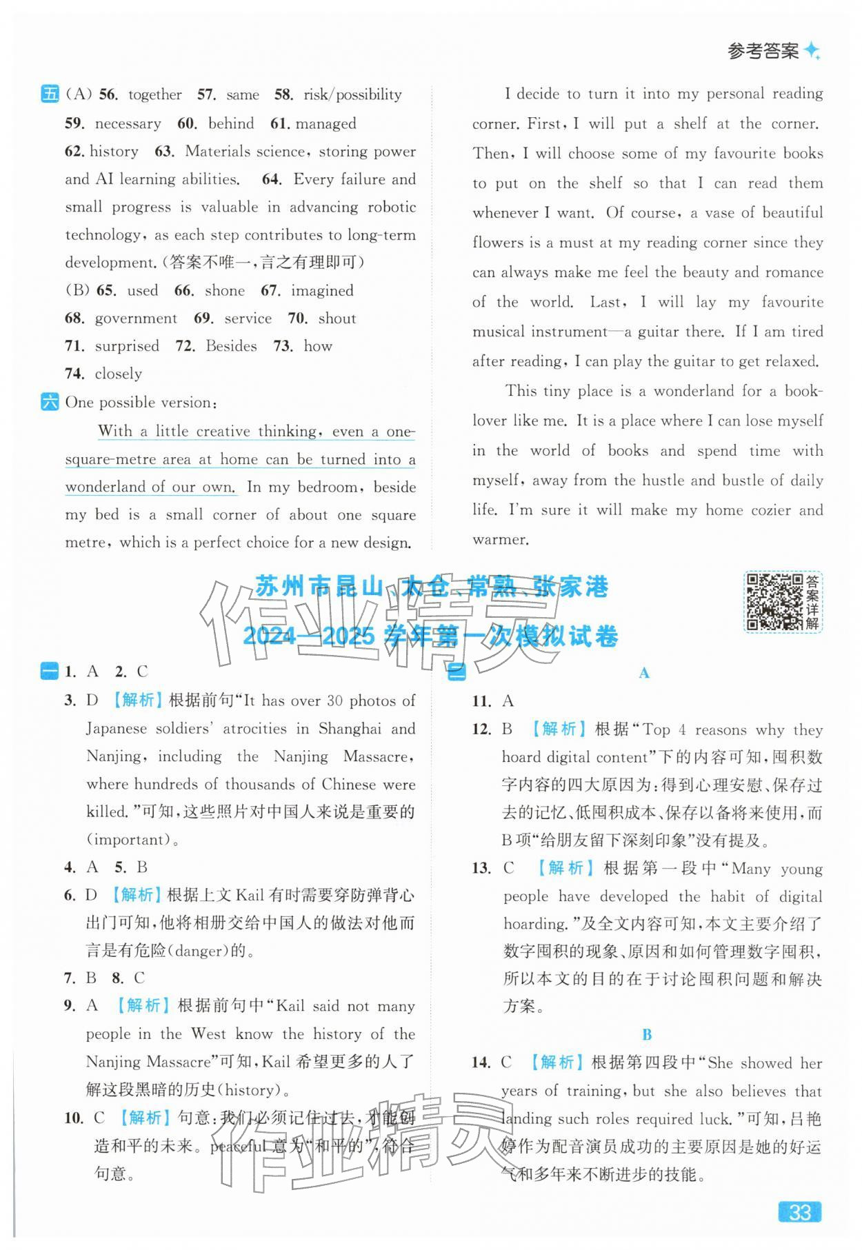 2026年亮点给力提优课时作业本九年级英语下册译林版参考答案第33页