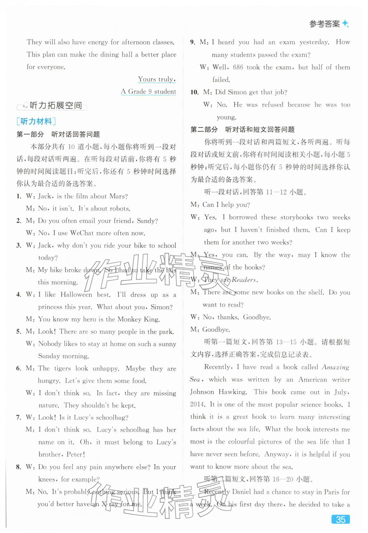 2026年亮点给力提优课时作业本九年级英语下册译林版参考答案第35页