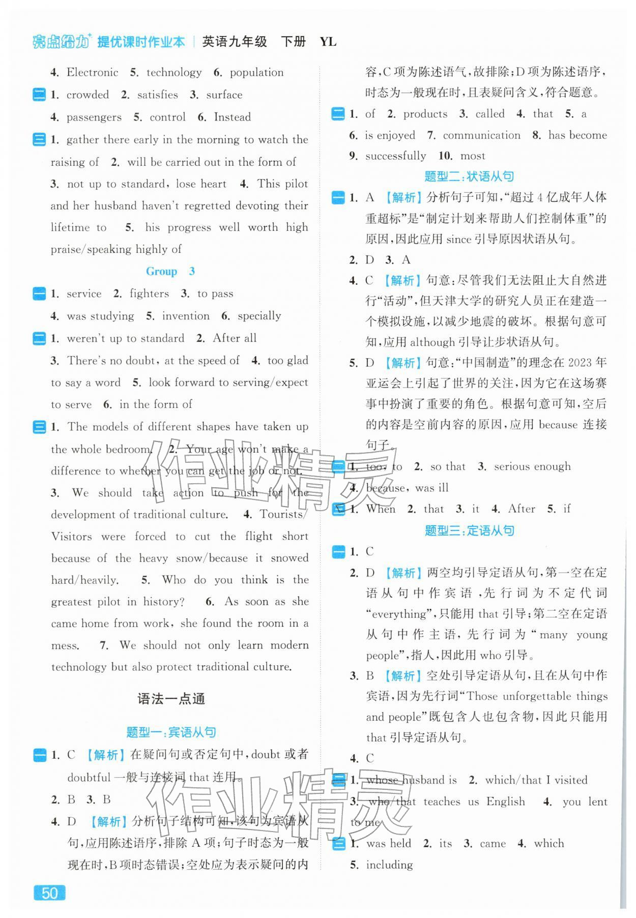 2026年亮点给力提优课时作业本九年级英语下册译林版参考答案第50页