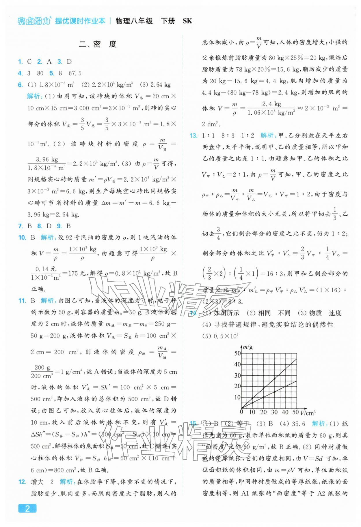 2026年亮点给力提优课时作业本八年级物理下册苏科版参考答案第2页