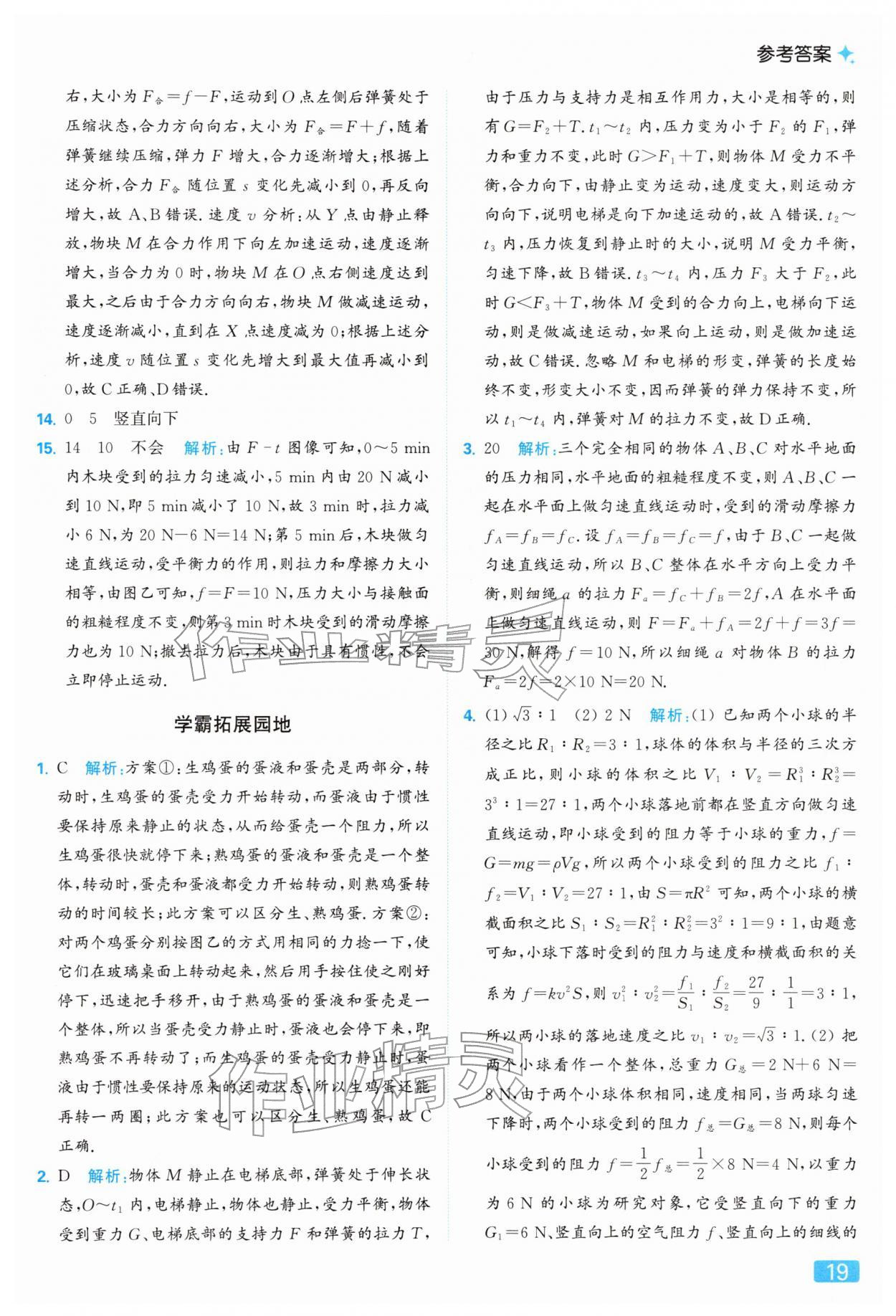 2026年亮点给力提优课时作业本八年级物理下册苏科版参考答案第19页