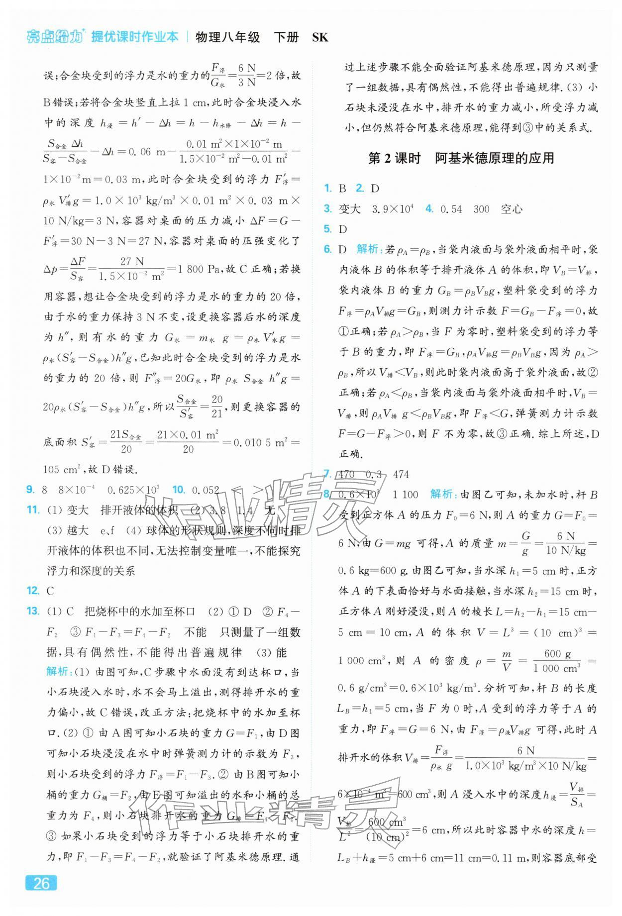 2026年亮点给力提优课时作业本八年级物理下册苏科版参考答案第26页