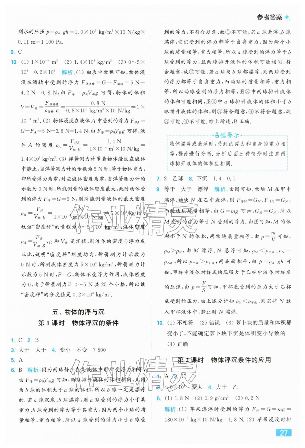 2026年亮点给力提优课时作业本八年级物理下册苏科版参考答案第27页