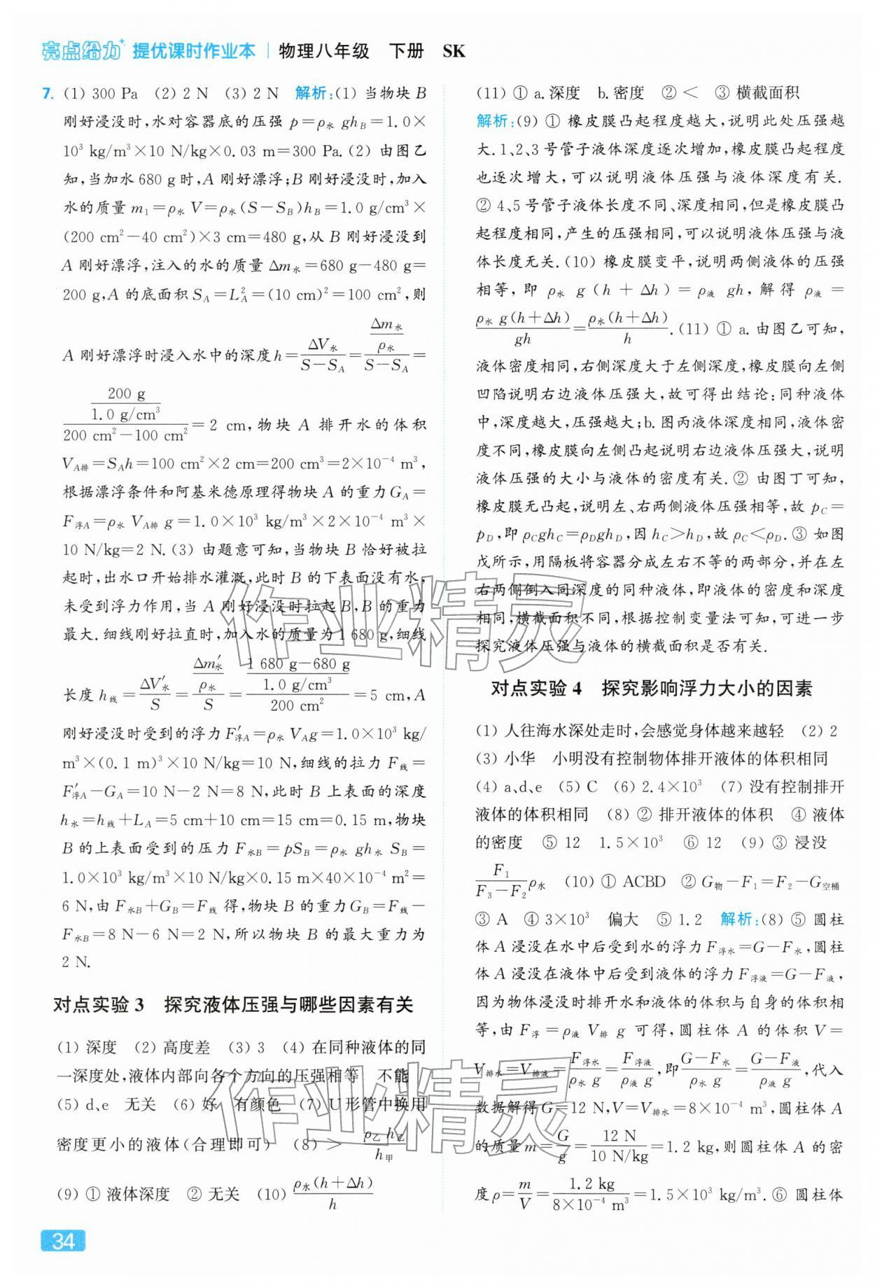 2026年亮点给力提优课时作业本八年级物理下册苏科版参考答案第34页