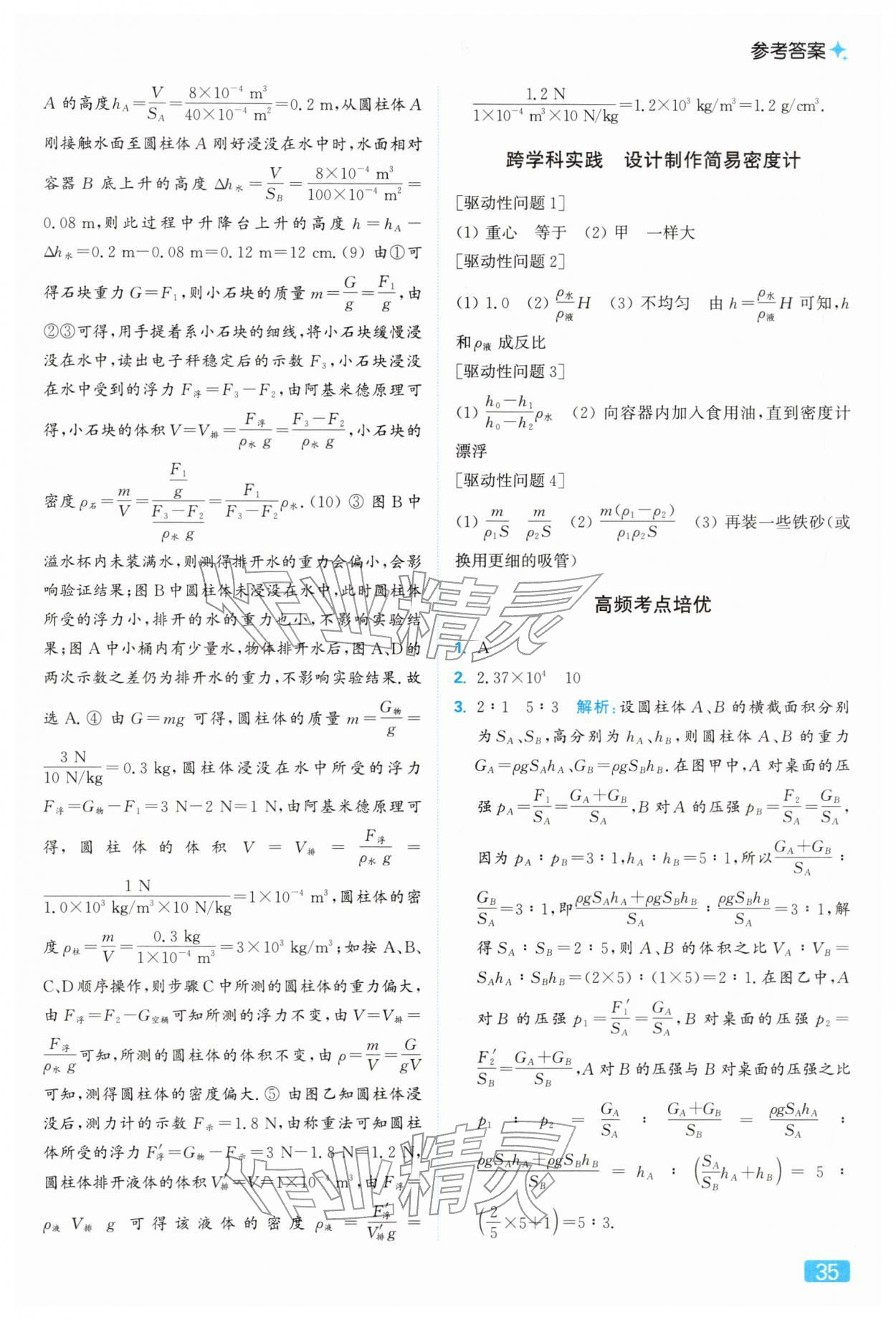 2026年亮点给力提优课时作业本八年级物理下册苏科版参考答案第35页