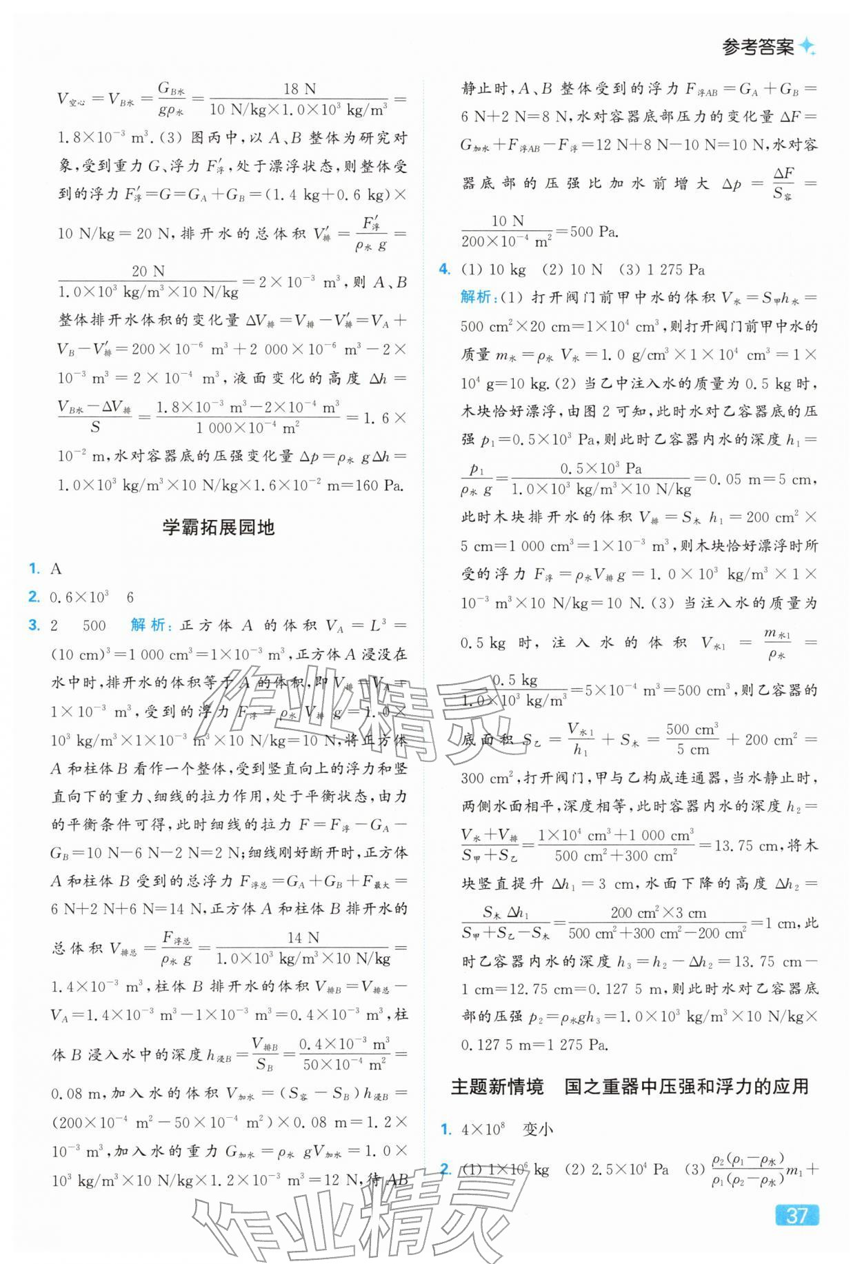 2026年亮点给力提优课时作业本八年级物理下册苏科版参考答案第37页