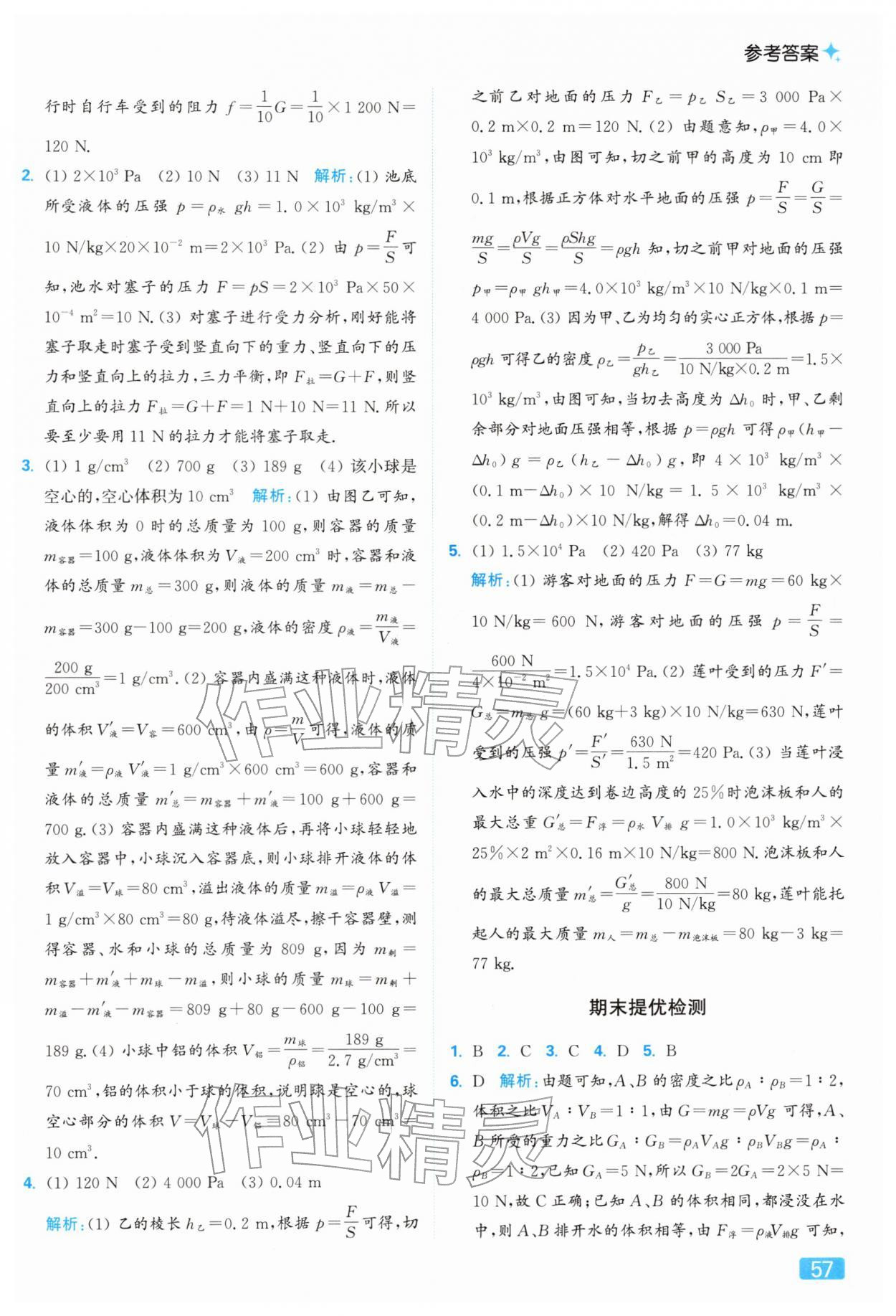 2026年亮点给力提优课时作业本八年级物理下册苏科版参考答案第57页