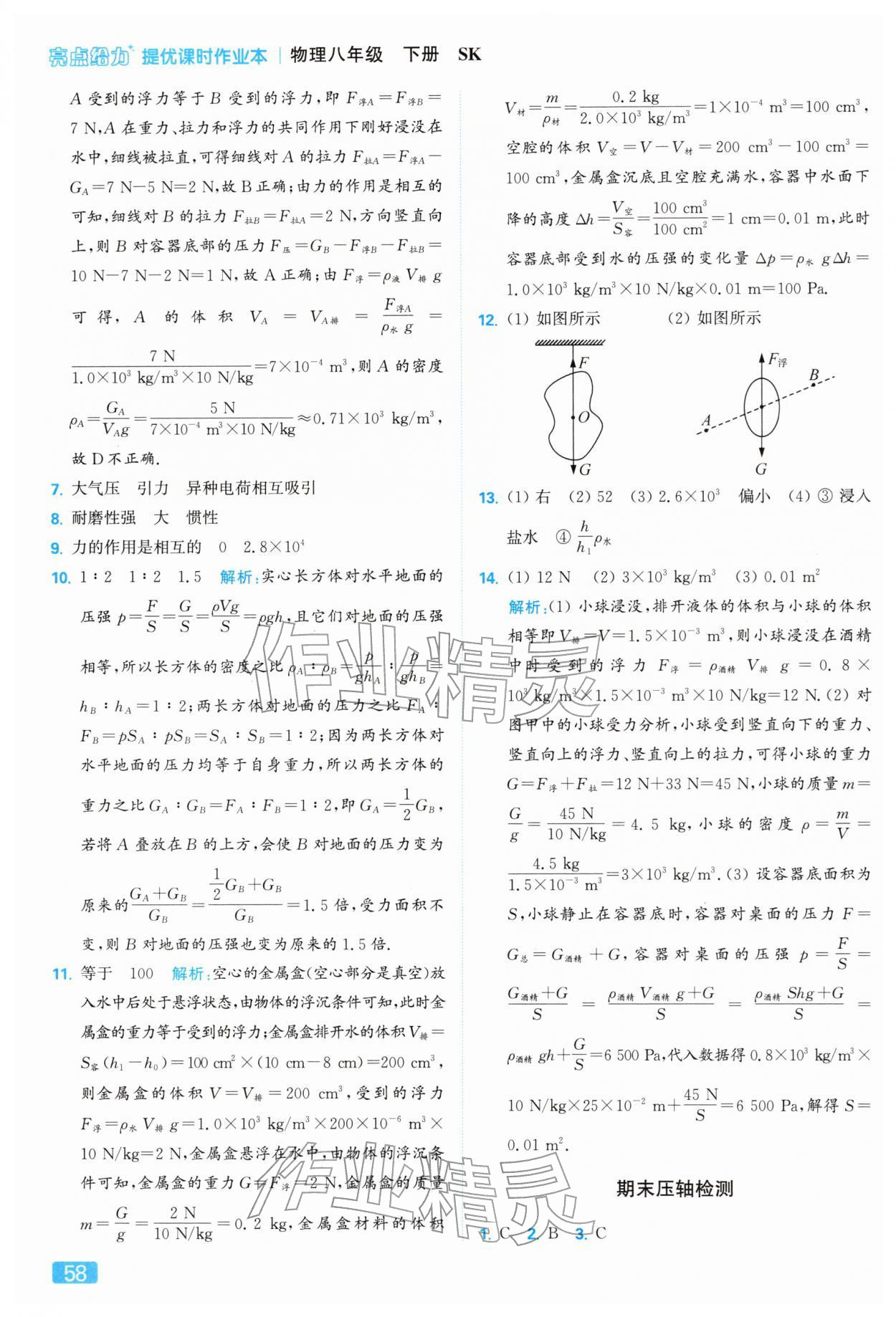 2026年亮点给力提优课时作业本八年级物理下册苏科版参考答案第58页