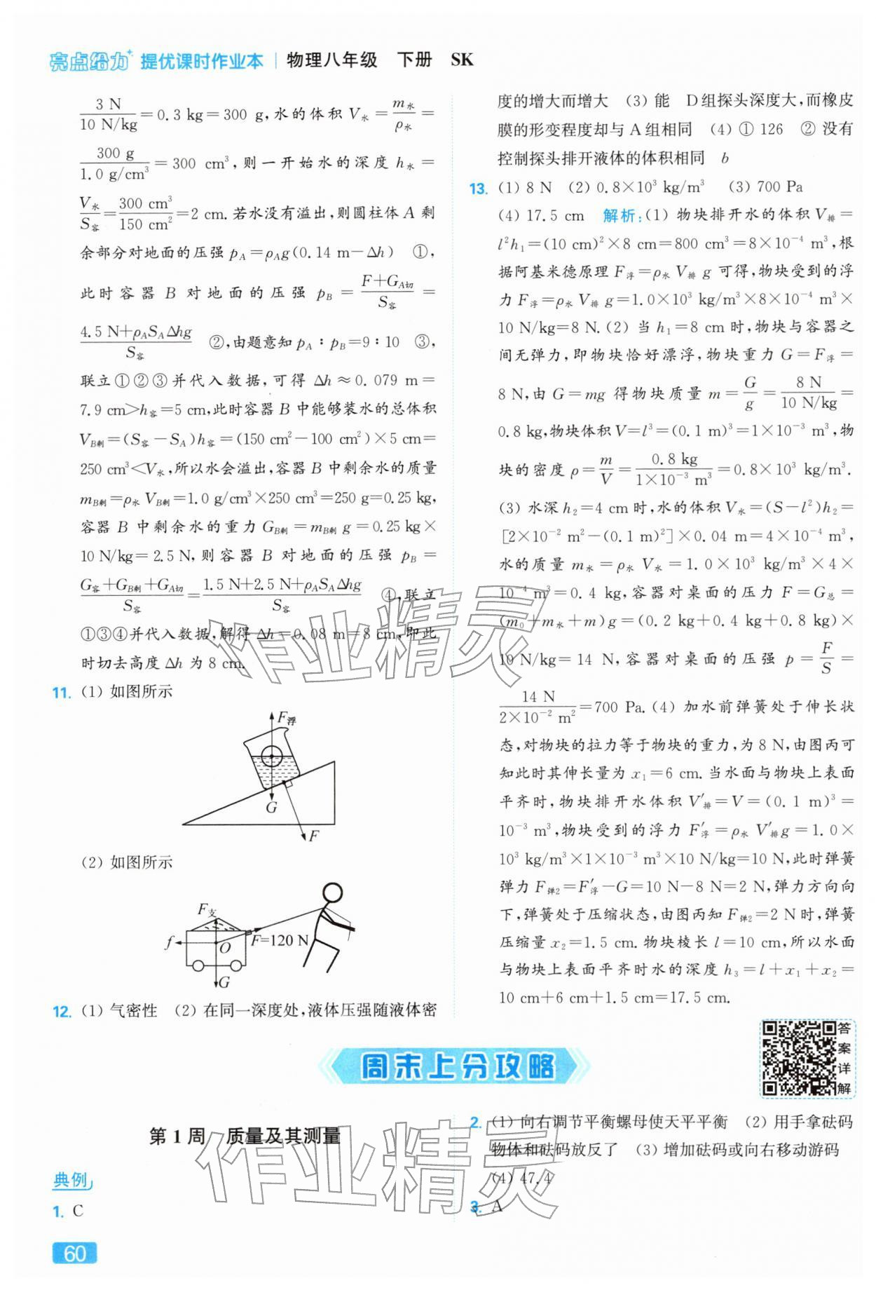 2026年亮点给力提优课时作业本八年级物理下册苏科版参考答案第60页