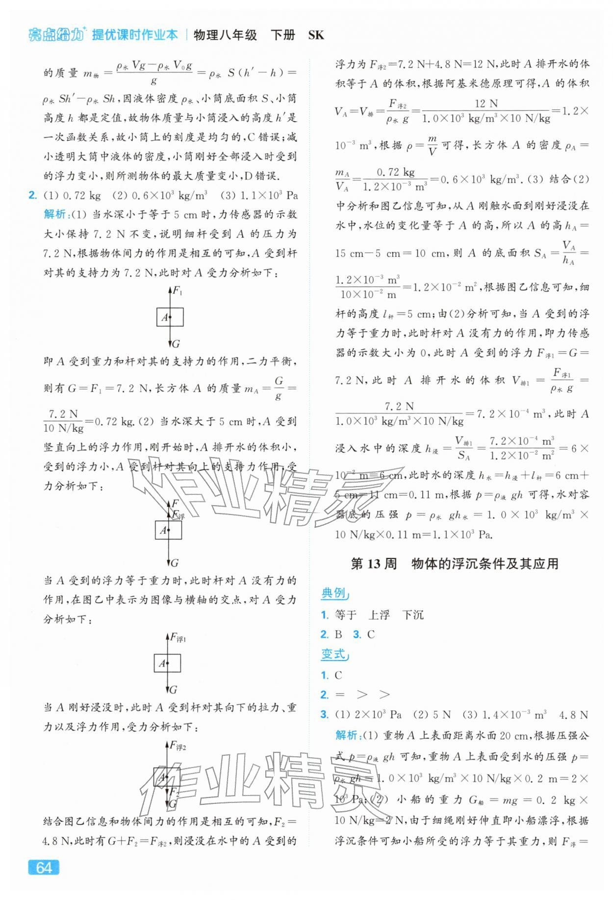 2026年亮点给力提优课时作业本八年级物理下册苏科版参考答案第64页
