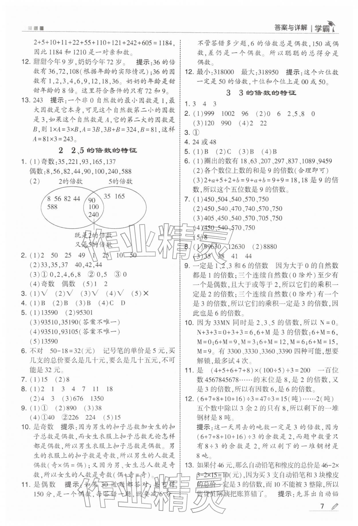 2026年学霸五年级数学下册苏教版第7页