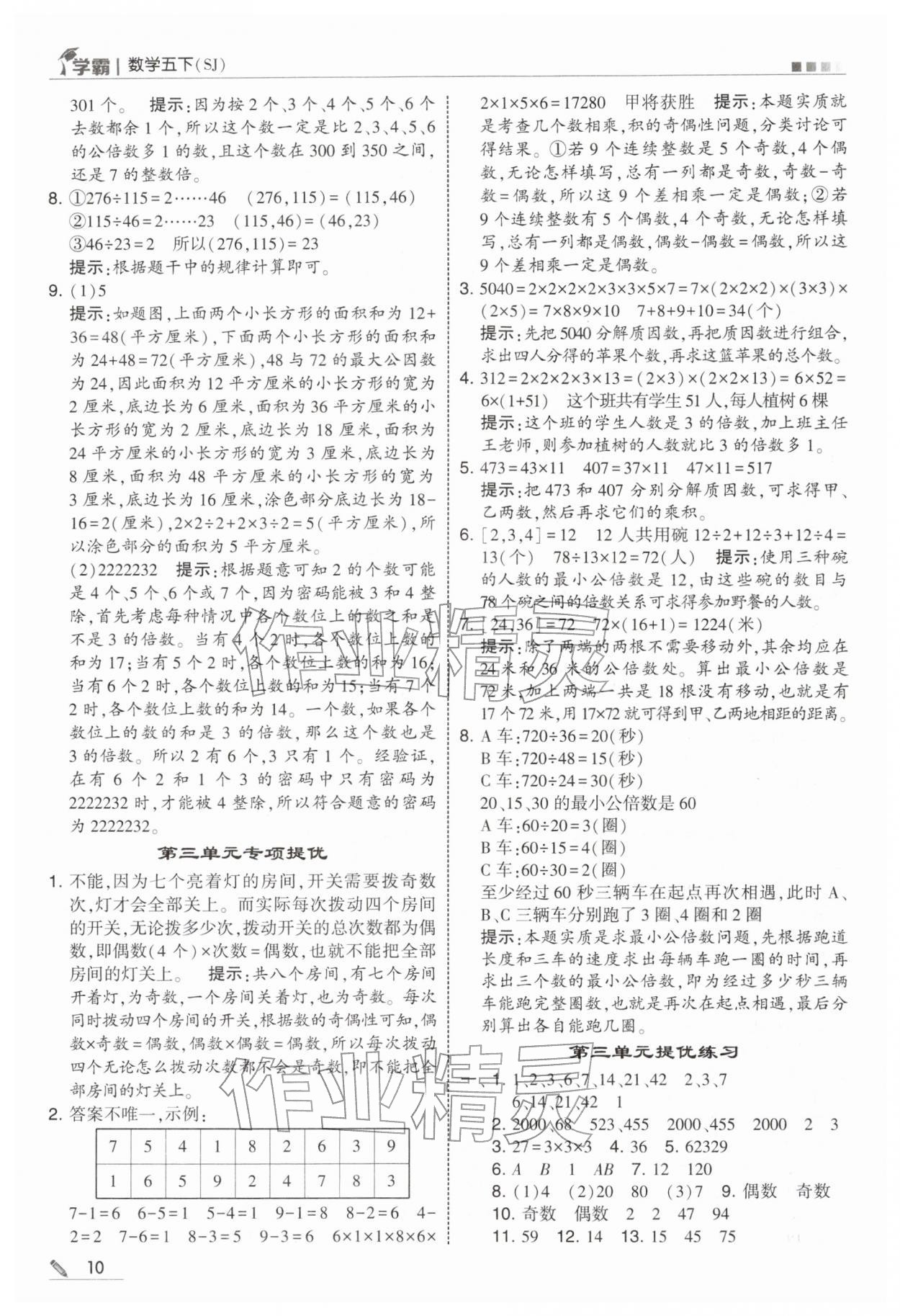 2026年学霸五年级数学下册苏教版第10页