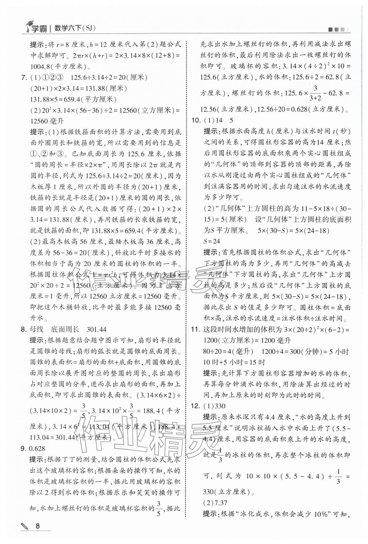 2026年学霸六年级数学下册苏教版第8页