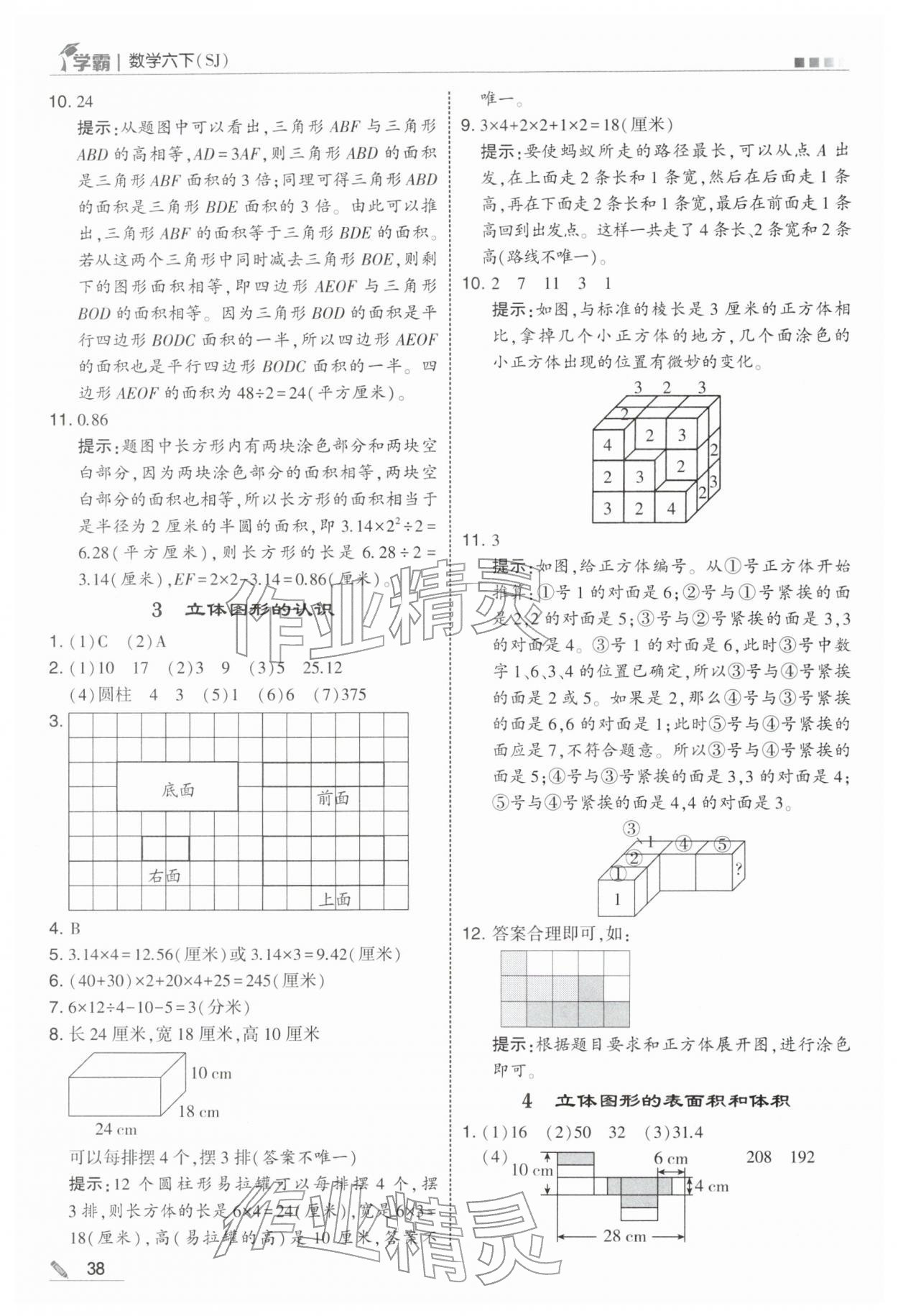 2026年学霸六年级数学下册苏教版第38页
