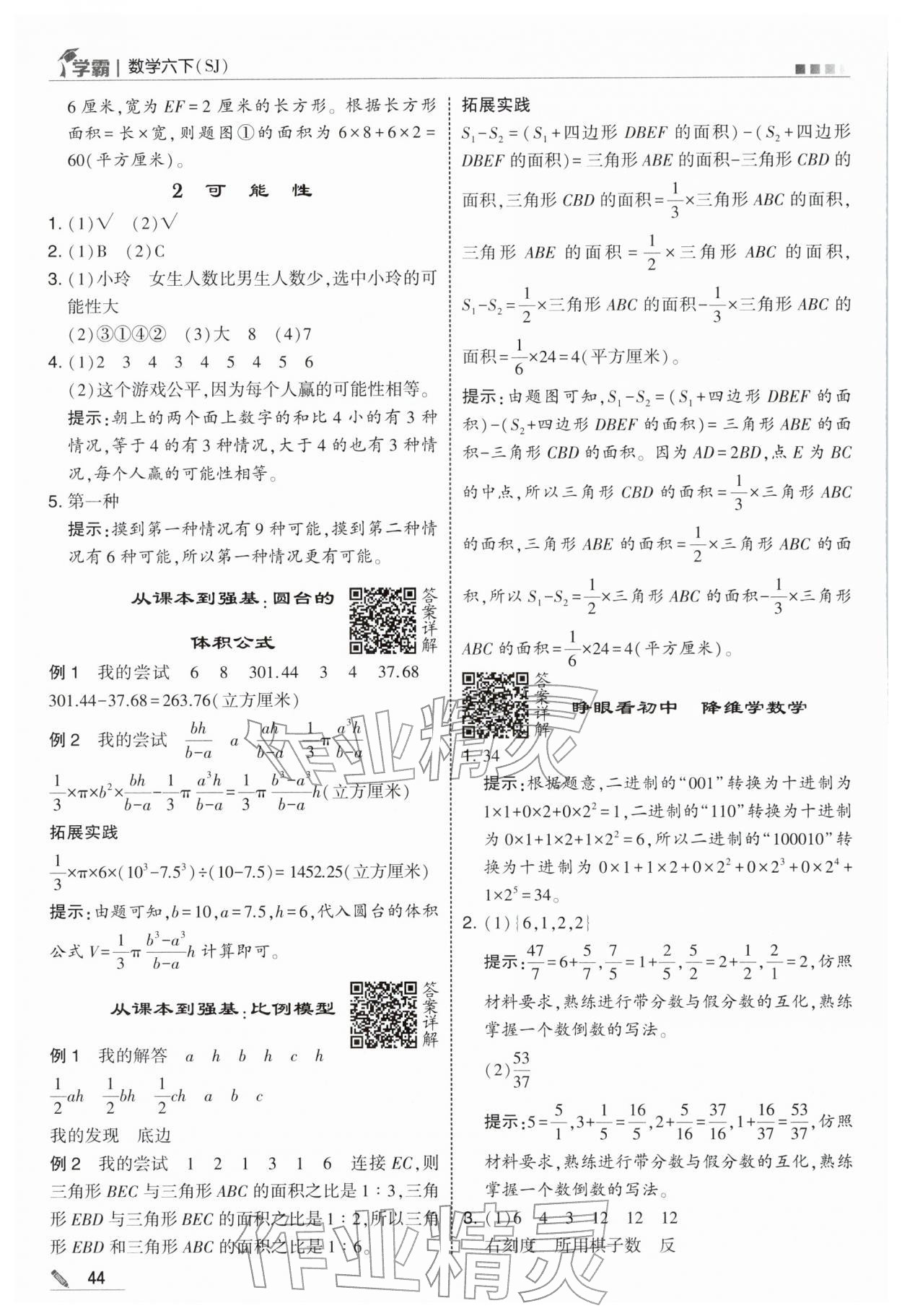 2026年学霸六年级数学下册苏教版第44页