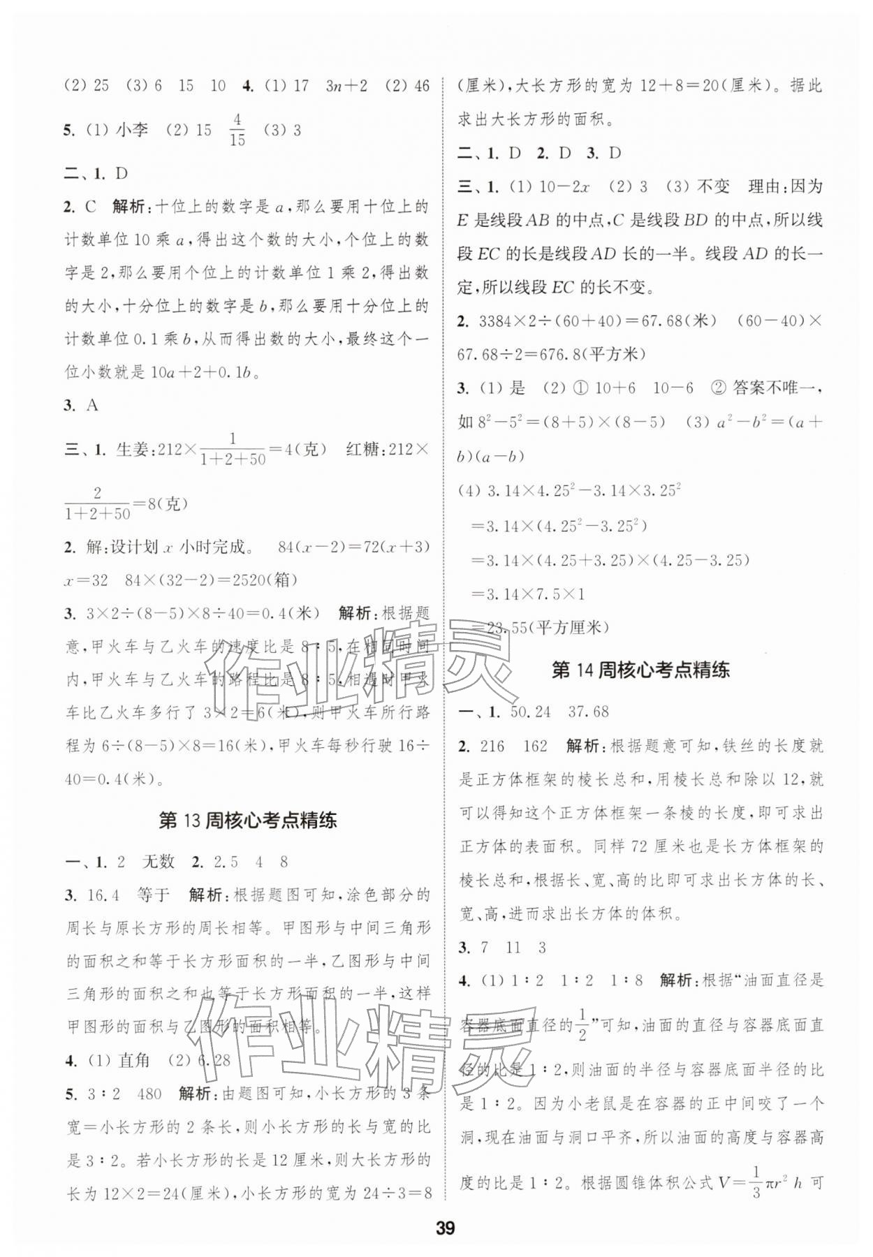 2026年通城学典课时作业本六年级数学下册苏教版江苏专版第39页
