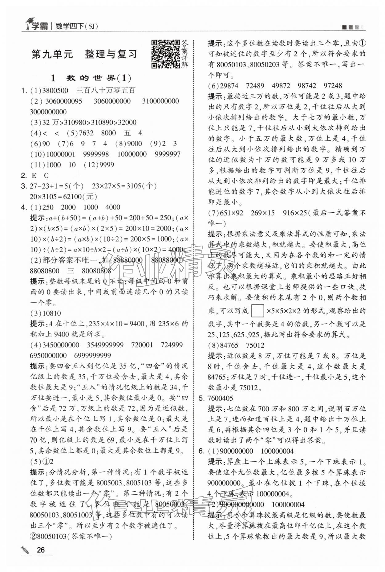 2026年学霸四年级数学下册苏教版第28页
