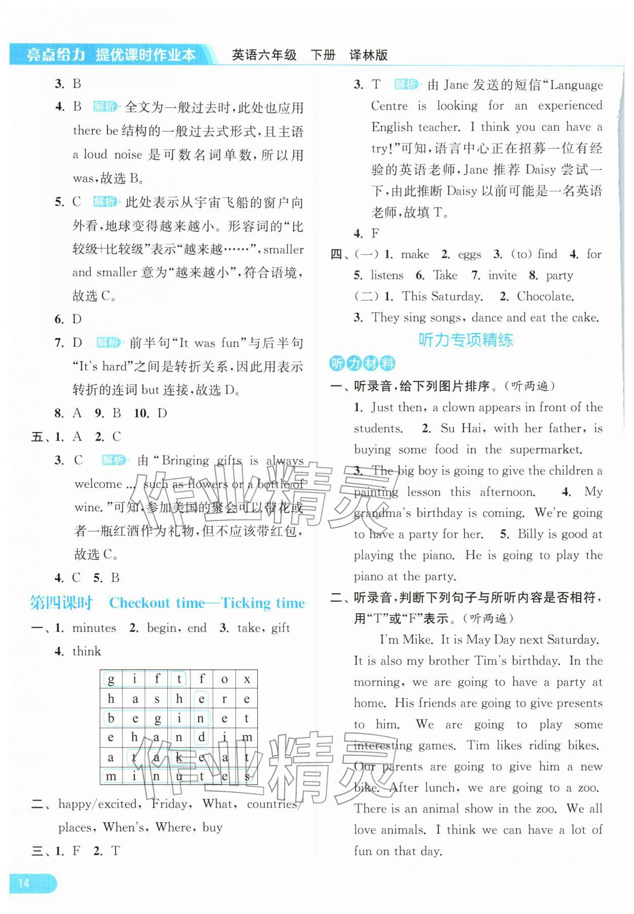 2026年亮点给力提优课时作业本六年级英语下册译林版第14页