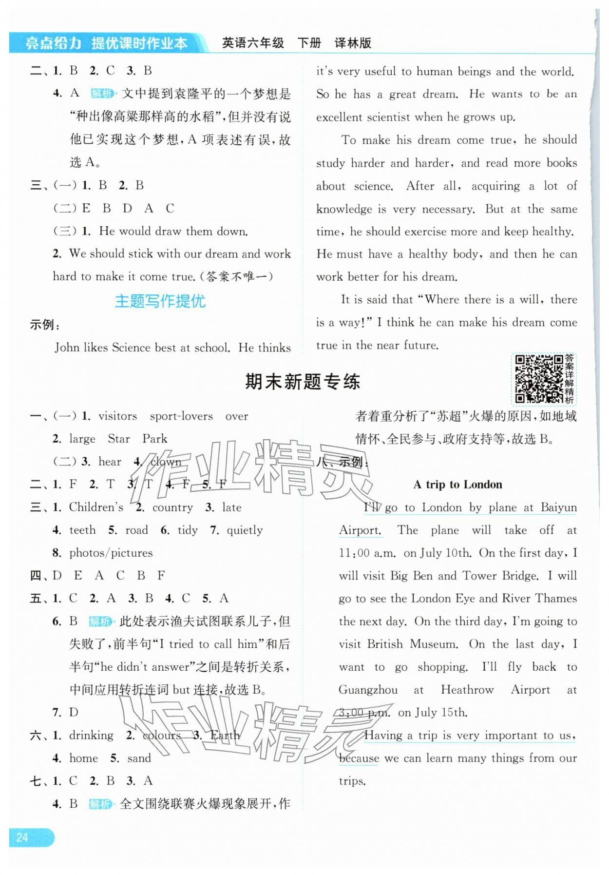 2026年亮点给力提优课时作业本六年级英语下册译林版第24页