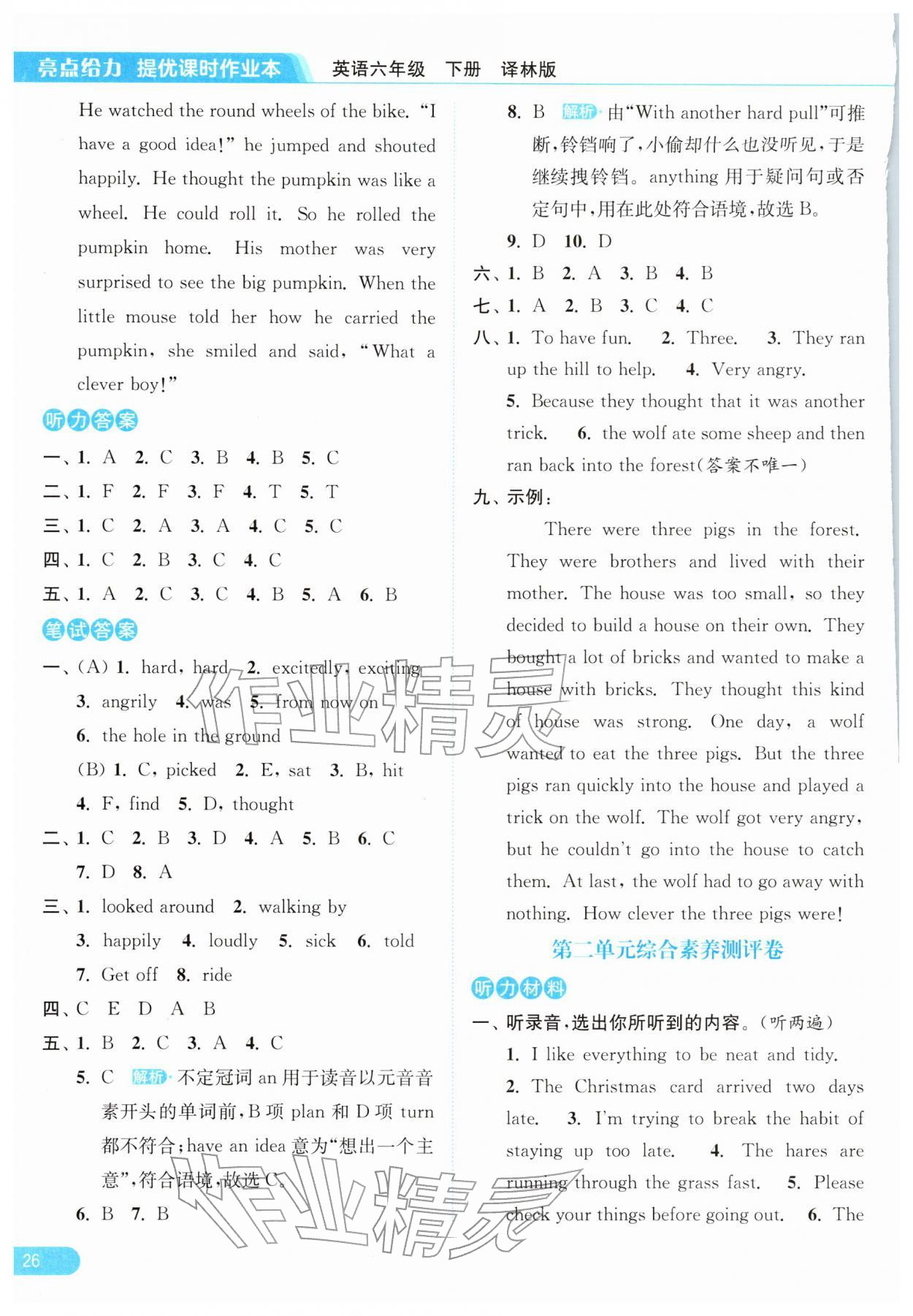 2026年亮点给力提优课时作业本六年级英语下册译林版第26页