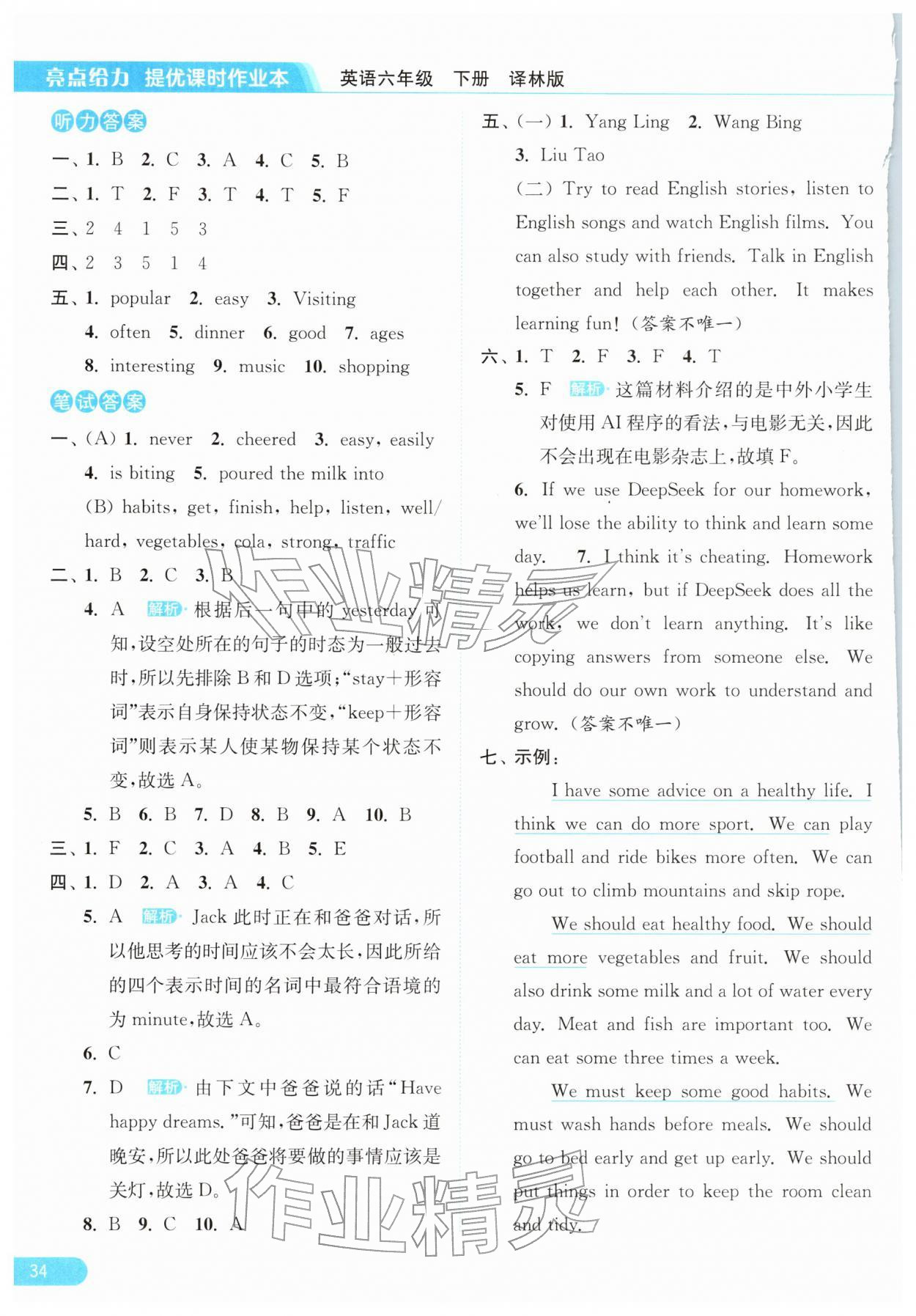 2026年亮点给力提优课时作业本六年级英语下册译林版第34页