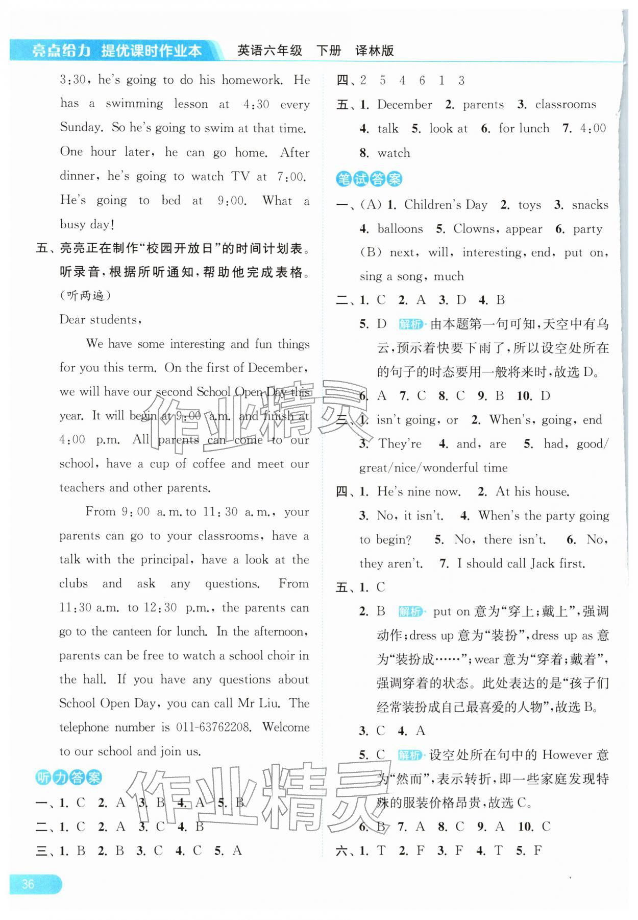2026年亮点给力提优课时作业本六年级英语下册译林版第36页