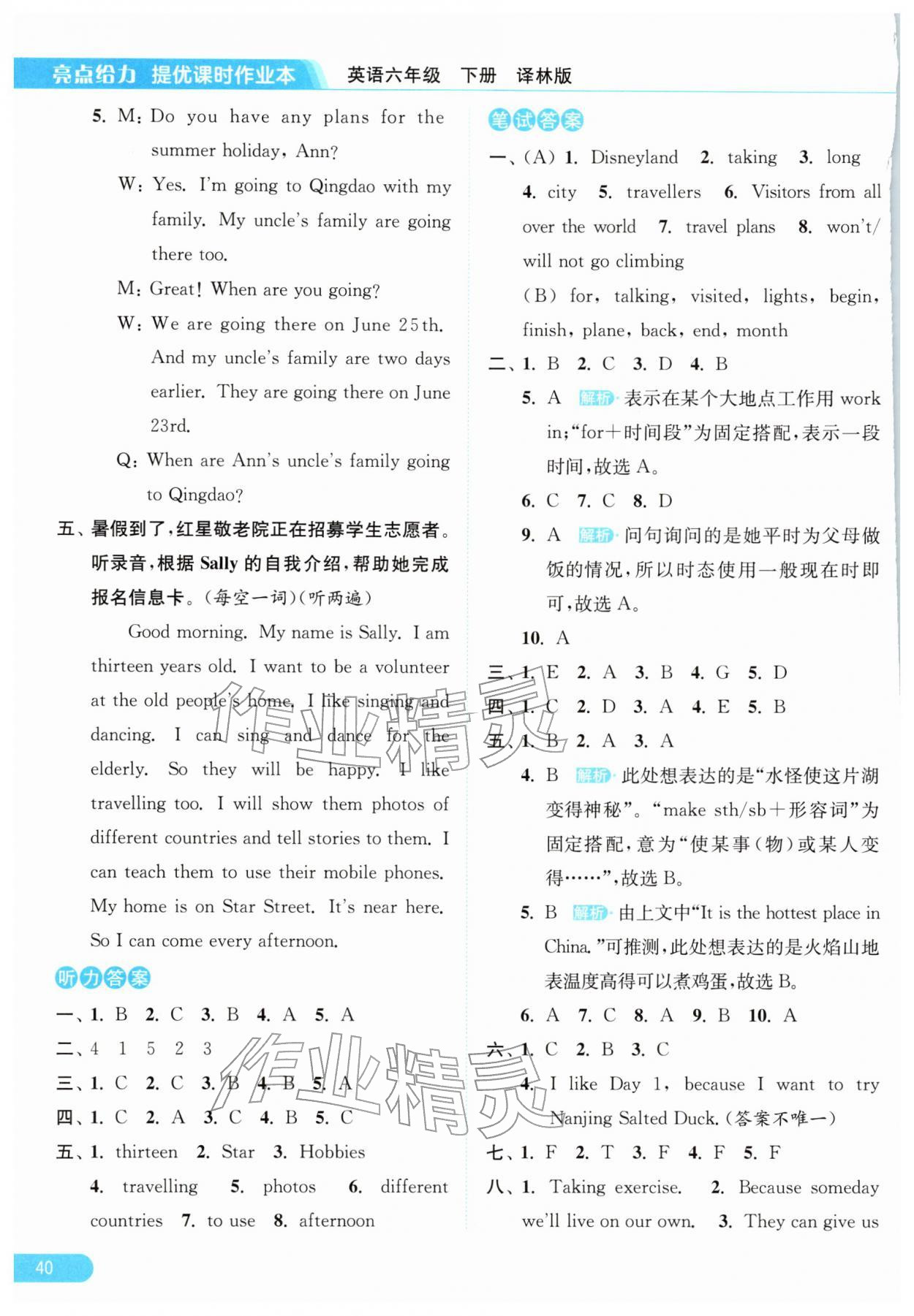 2026年亮点给力提优课时作业本六年级英语下册译林版第40页