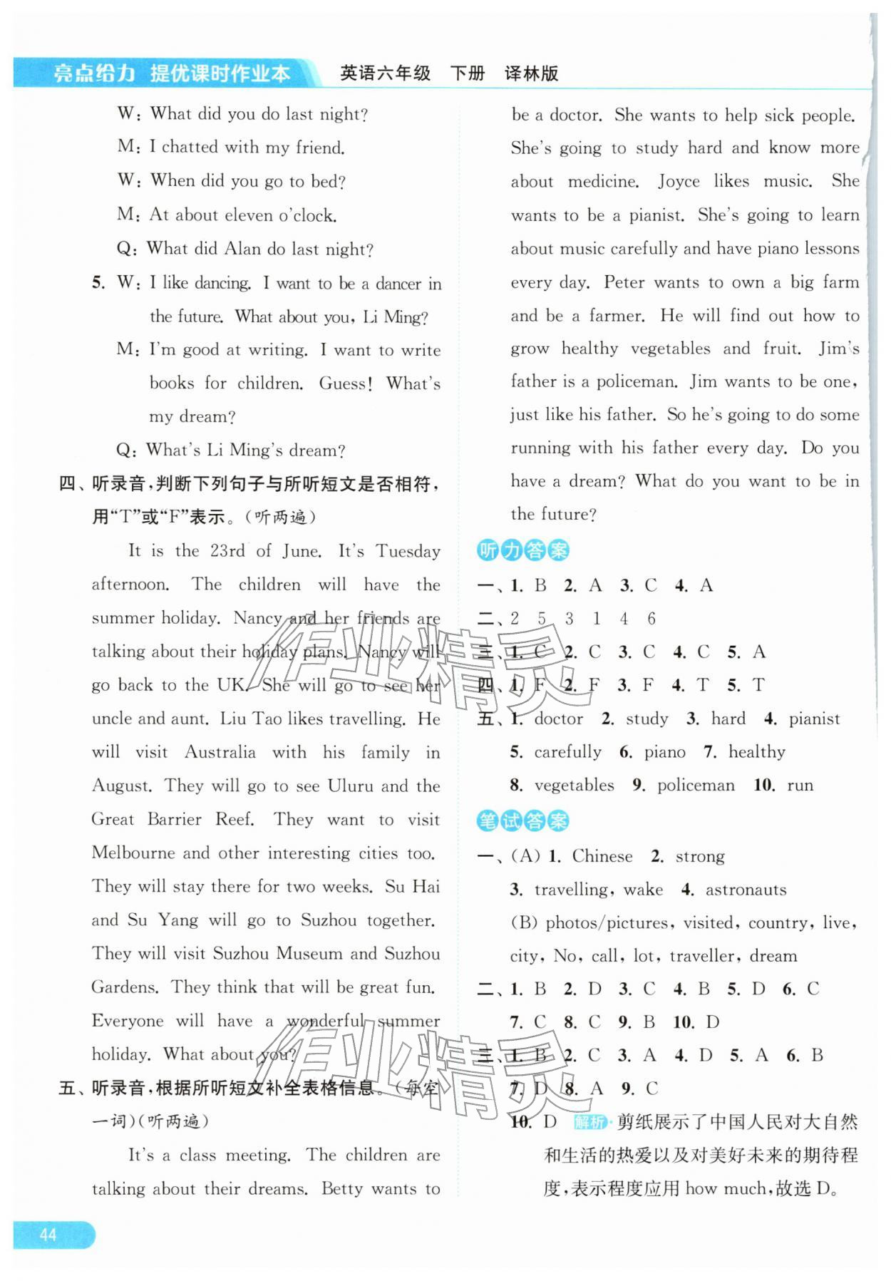 2026年亮点给力提优课时作业本六年级英语下册译林版第44页