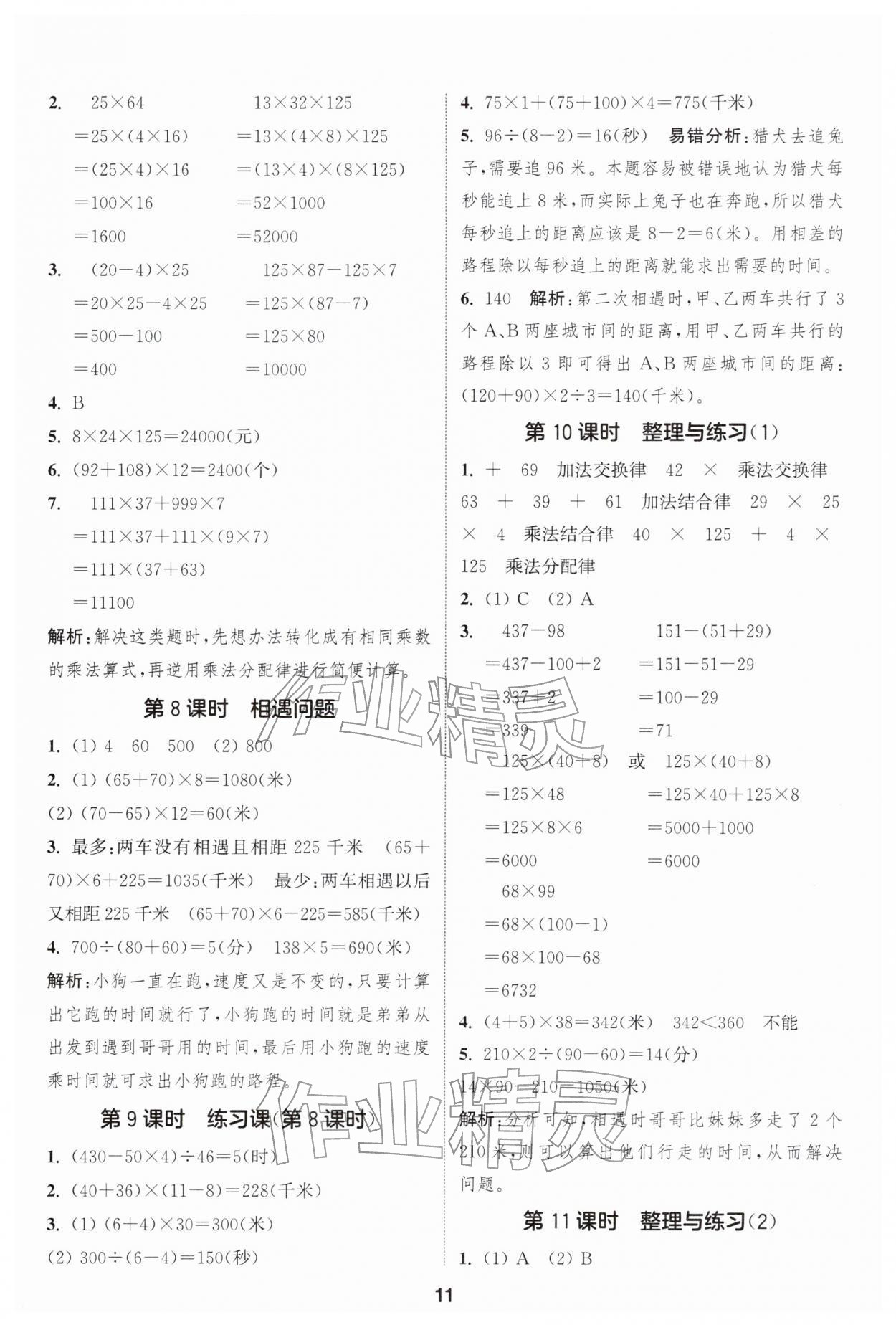2026年通城学典课时作业本四年级数学下册苏教版江苏专版第11页