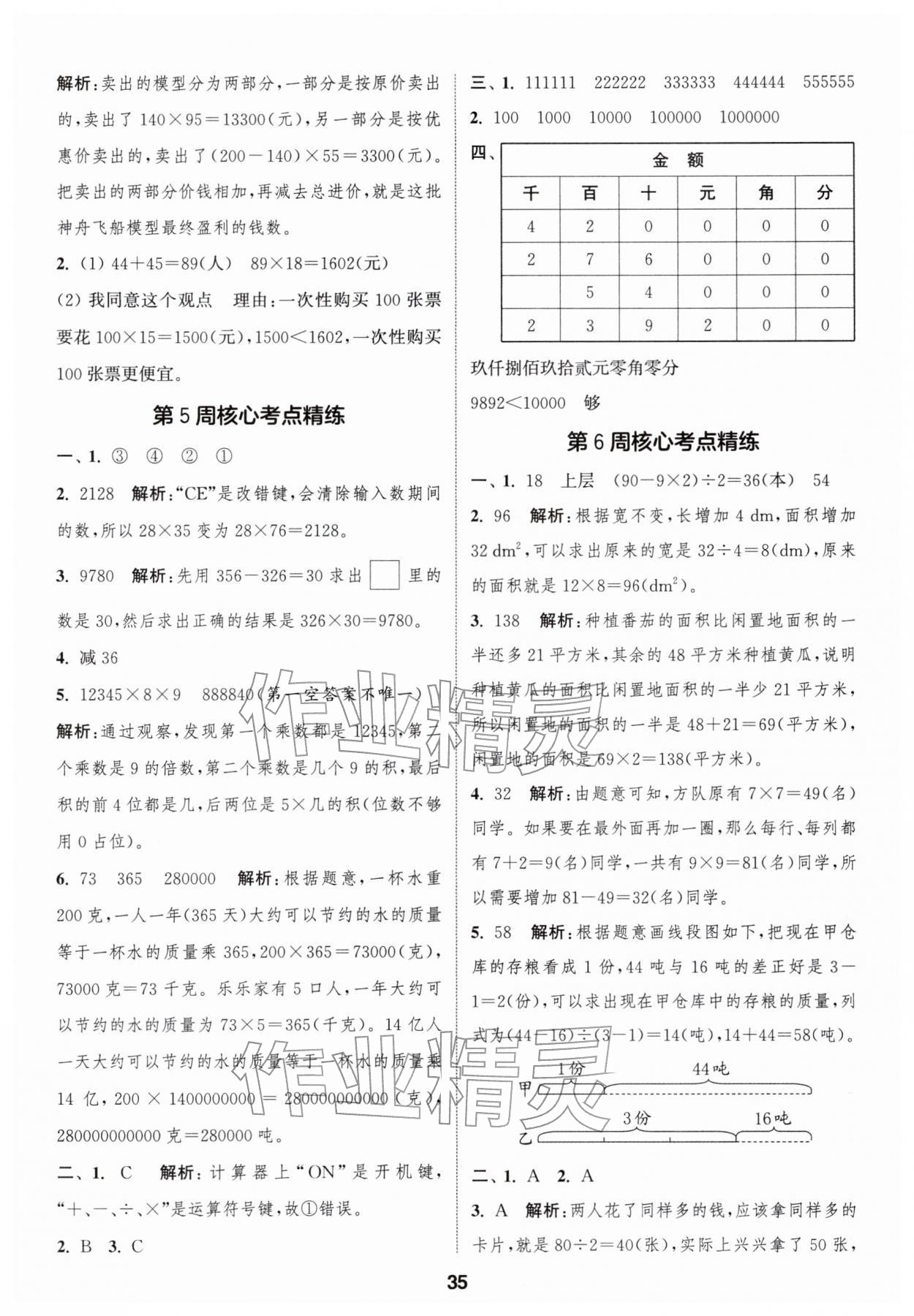 2026年通城学典课时作业本四年级数学下册苏教版江苏专版第35页