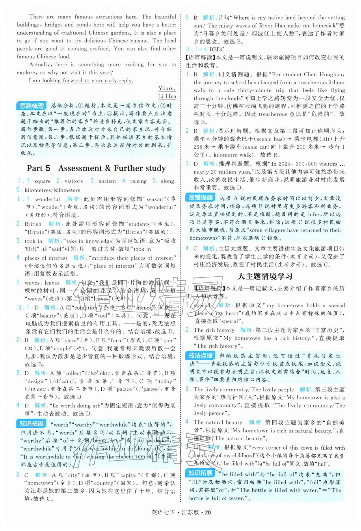 2026年学霸题中题七年级英语下册译林版参考答案第20页