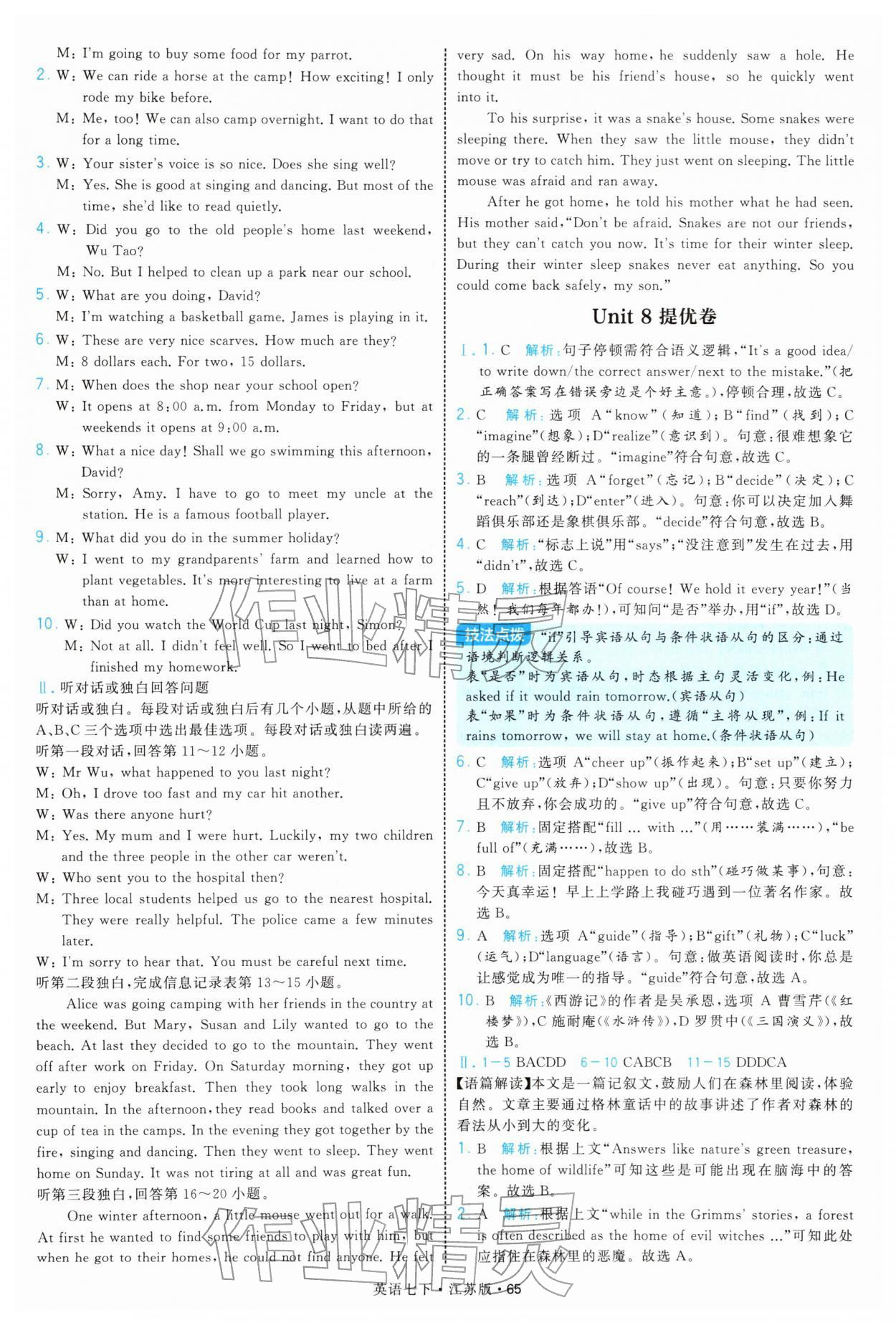 2026年学霸题中题七年级英语下册译林版参考答案第65页