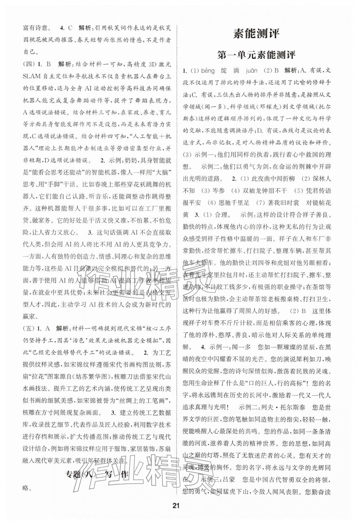 2026年通城学典课时作业本七年级语文下册人教版江苏专版第21页