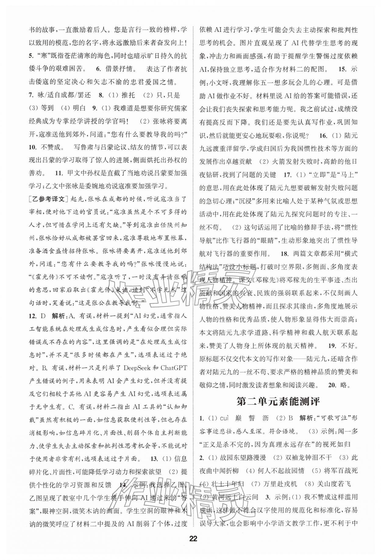2026年通城学典课时作业本七年级语文下册人教版江苏专版第22页