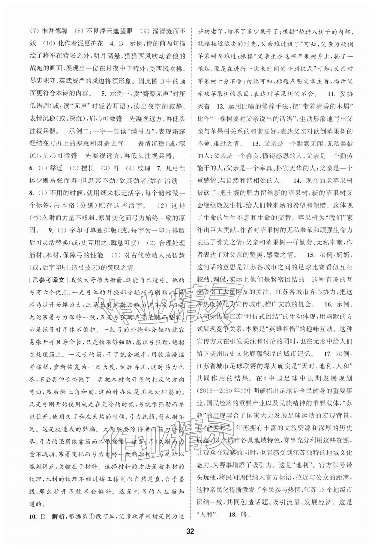 2026年通城学典课时作业本七年级语文下册人教版江苏专版第32页