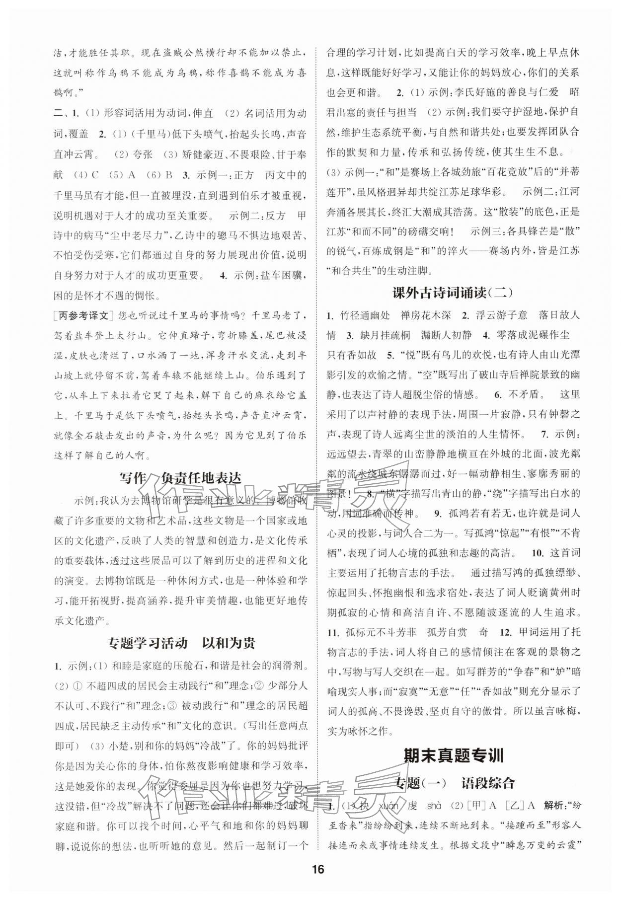 2026年通城学典课时作业本八年级语文下册人教版江苏专版第16页
