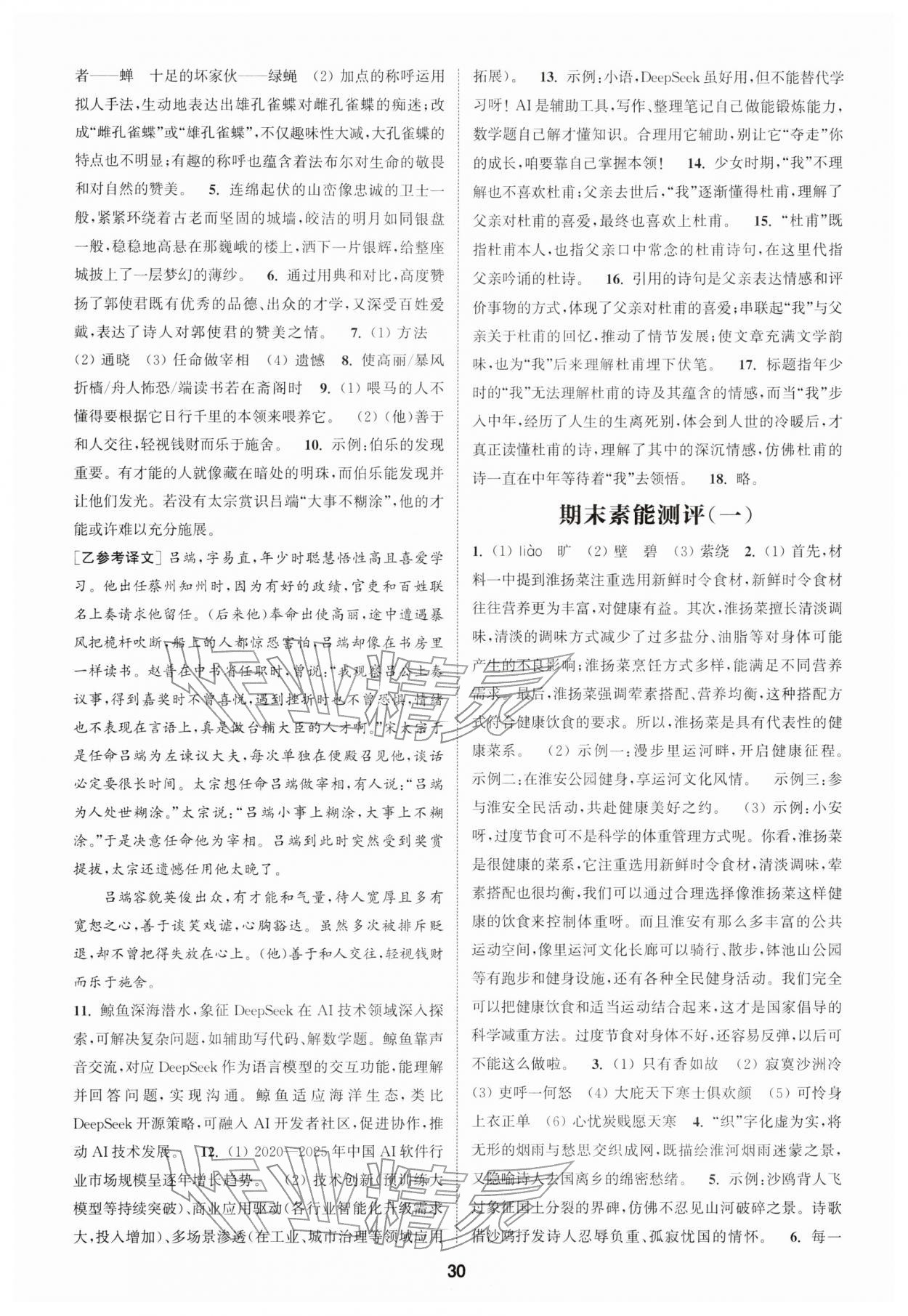 2026年通城学典课时作业本八年级语文下册人教版江苏专版第30页