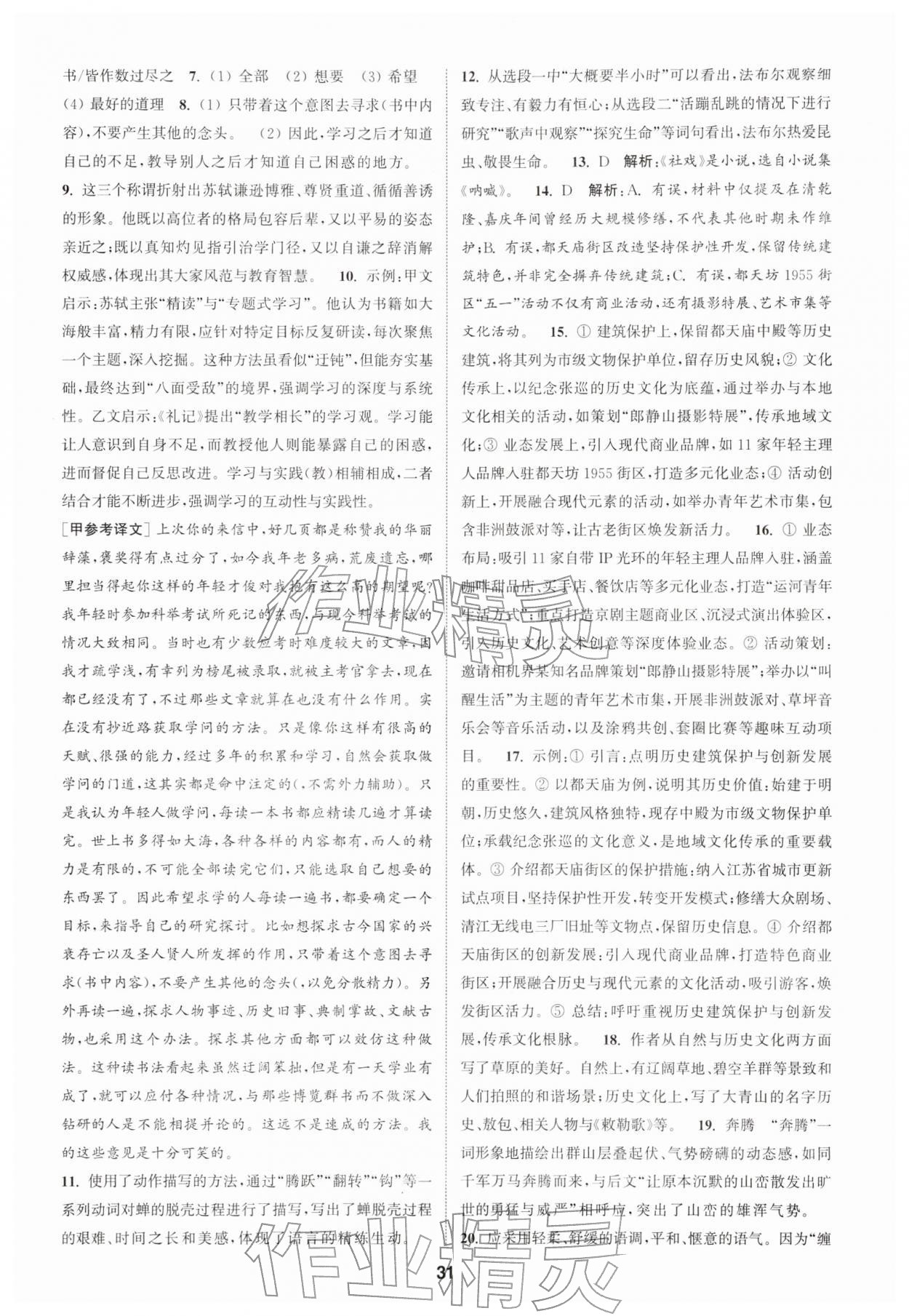2026年通城学典课时作业本八年级语文下册人教版江苏专版第31页