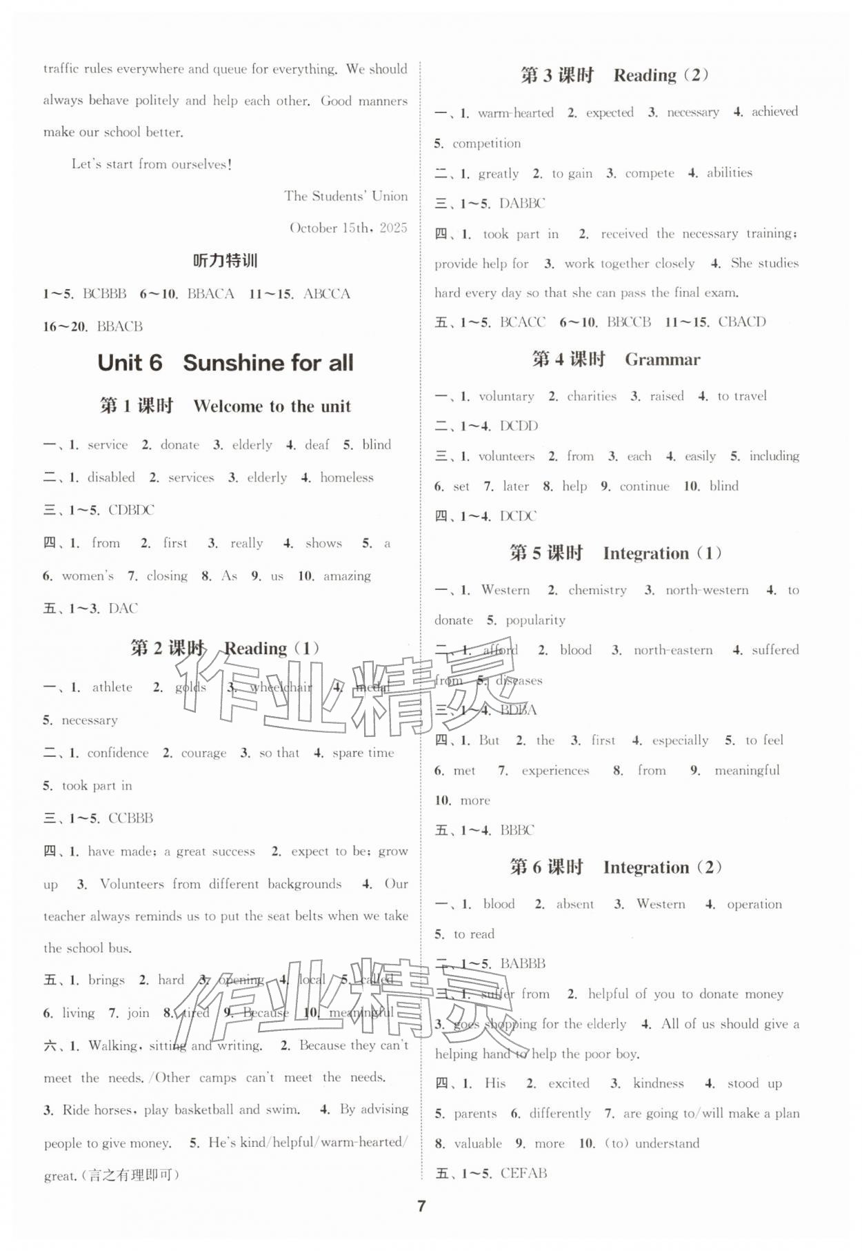 2026年通城学典课时作业本八年级英语下册译林版江苏专版第7页