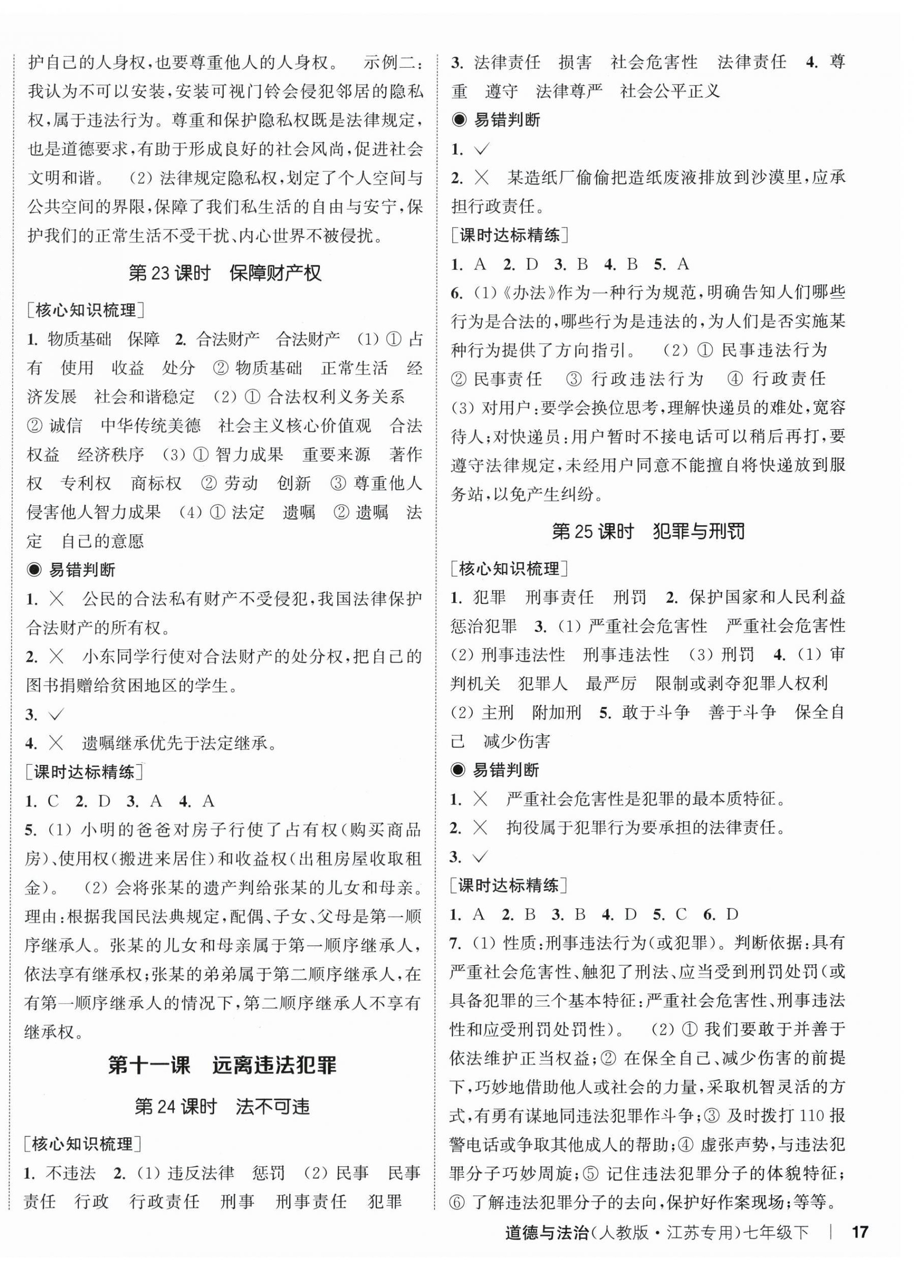 2026年通城学典课时作业本七年级道德与法治下册人教版江苏专版第10页