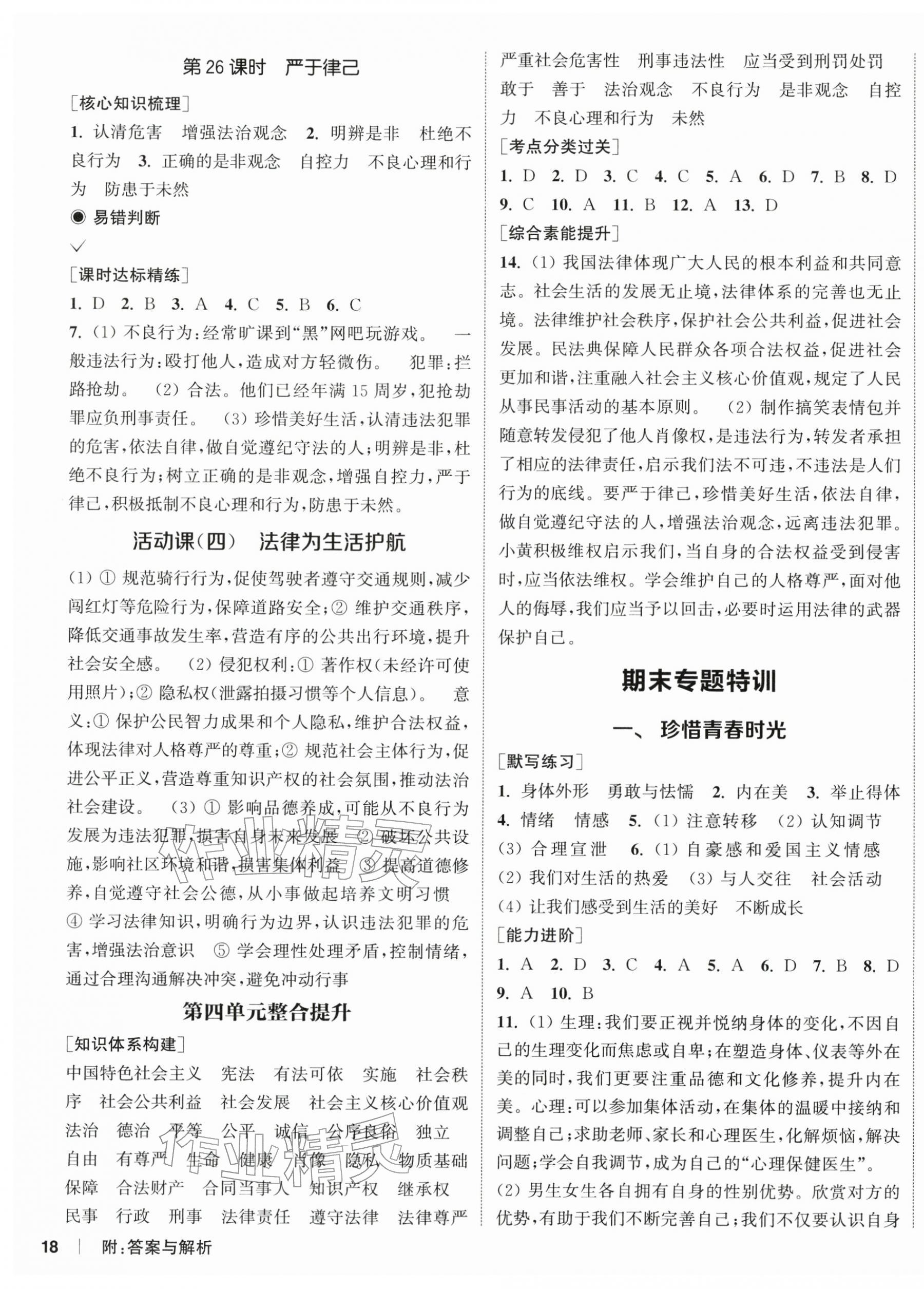 2026年通城学典课时作业本七年级道德与法治下册人教版江苏专版第11页