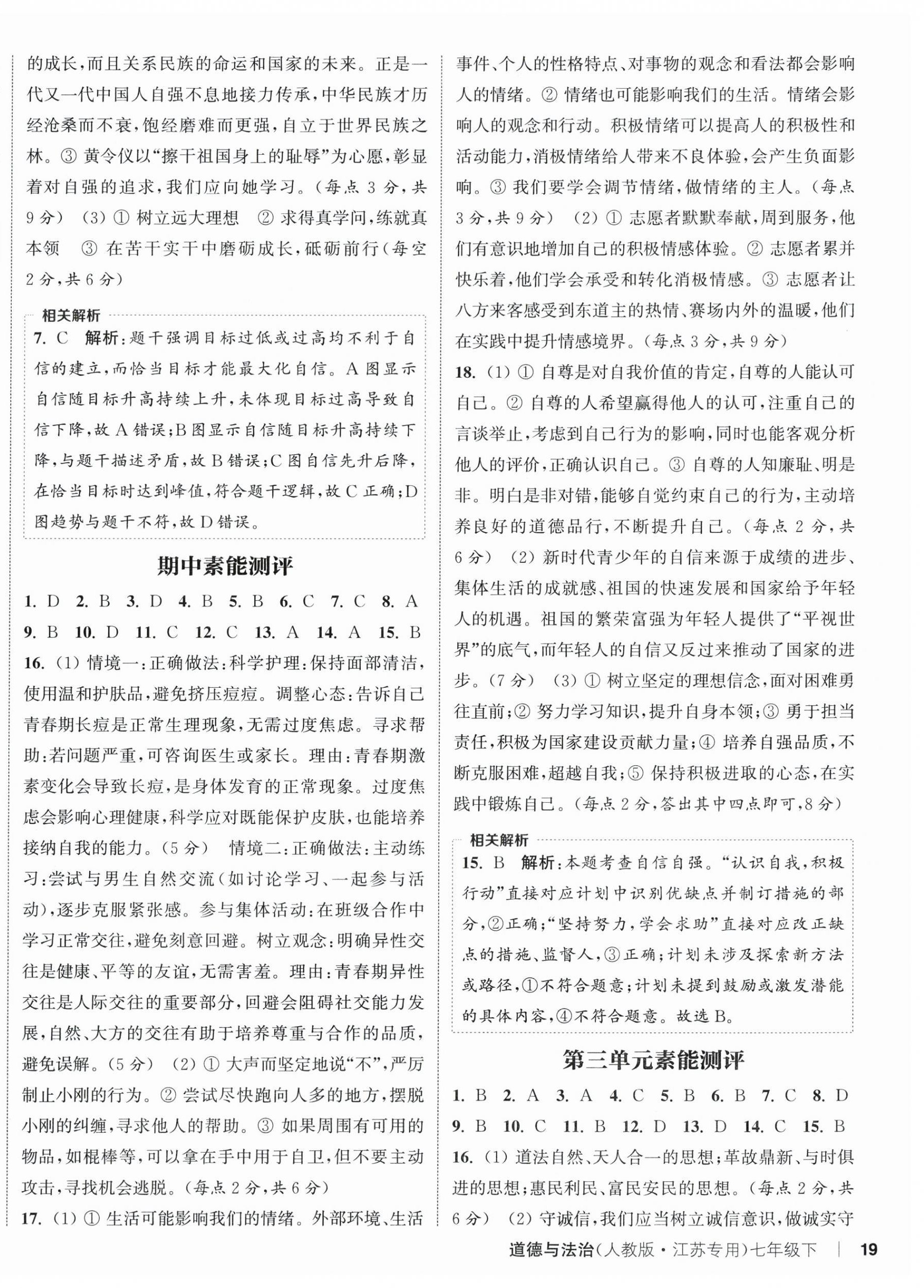 2026年通城学典课时作业本七年级道德与法治下册人教版江苏专版第14页